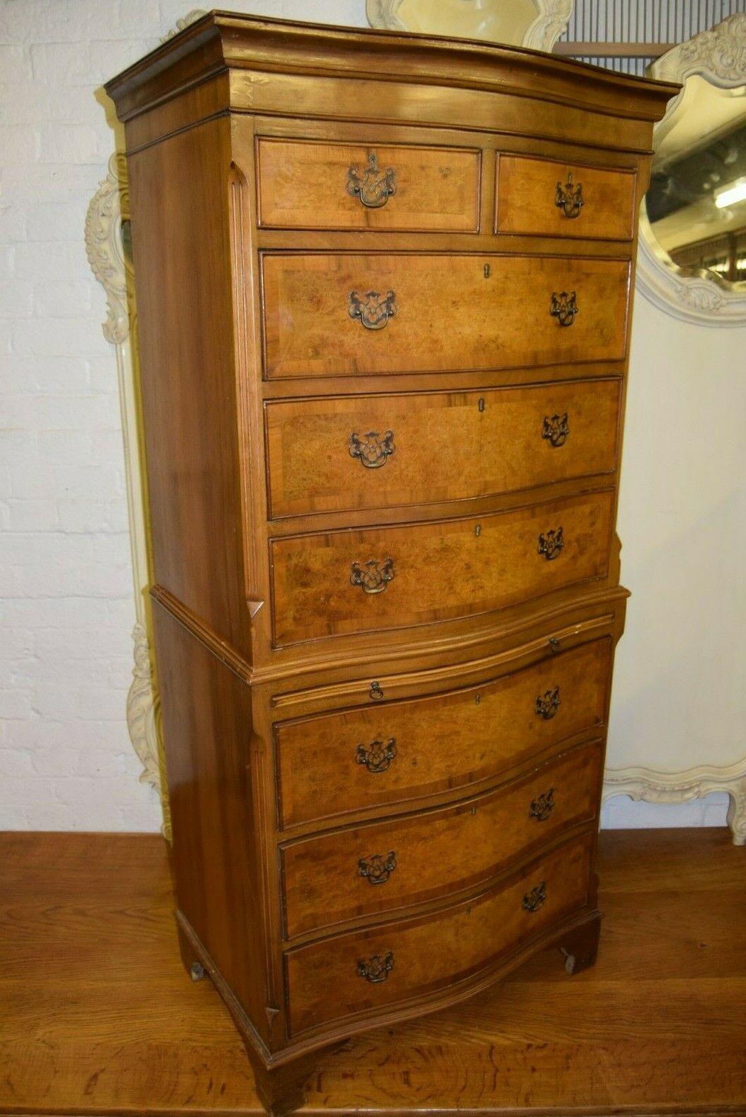 Georgian Design Walnut Serpentine Front Chest on Chest