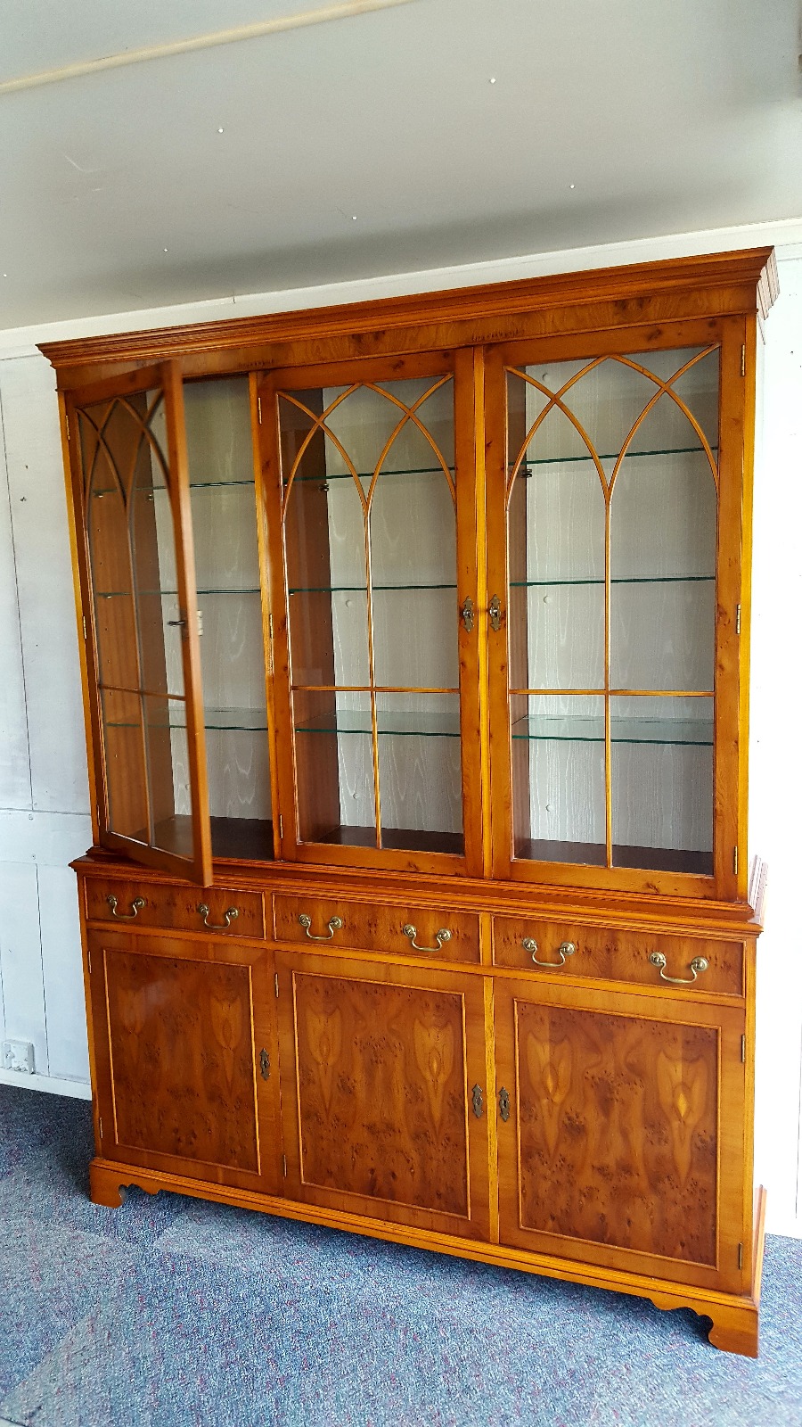 Georgian Design Yew Wood 3 Door Bookcase
