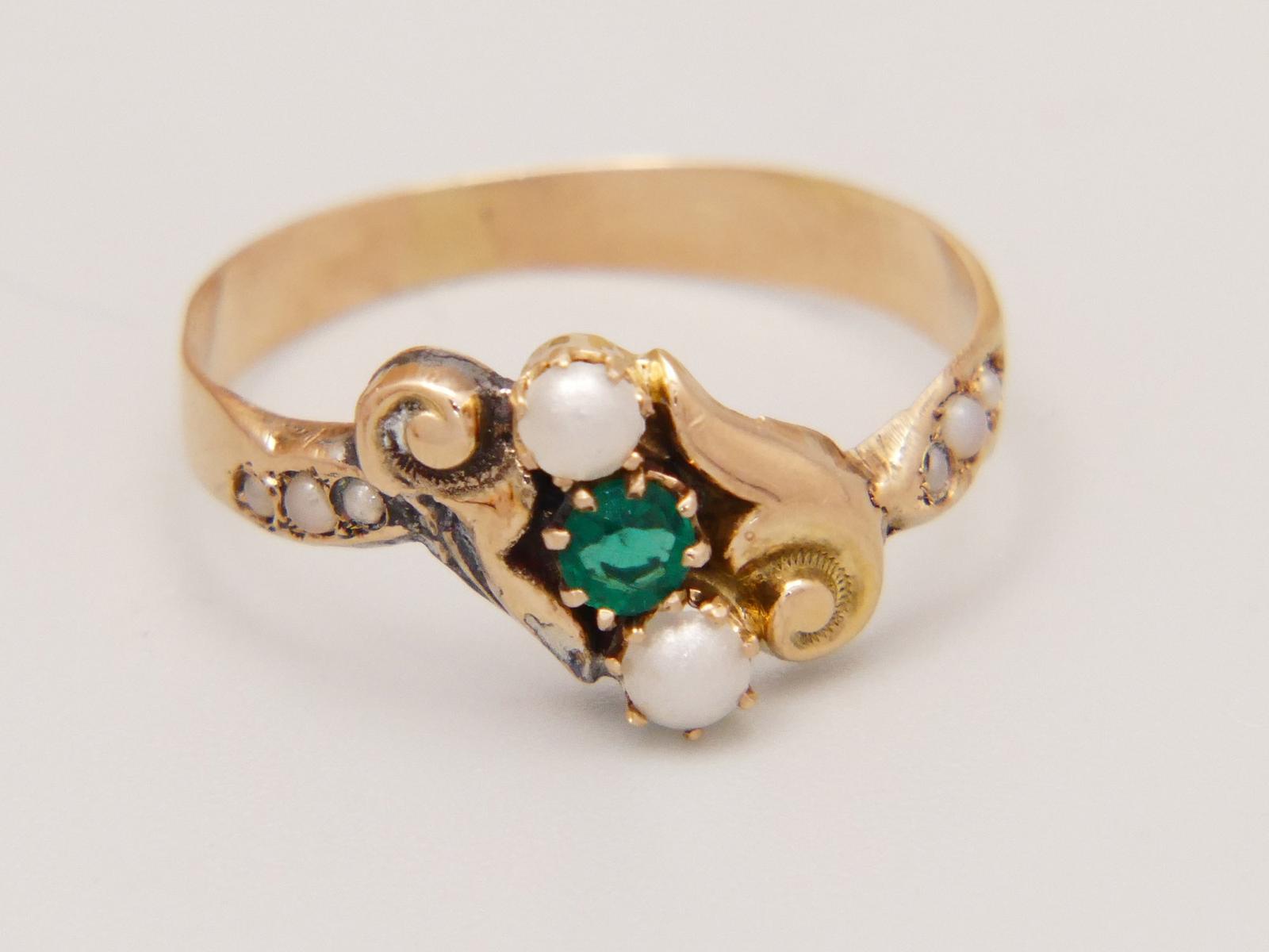 Georgian / Early Victorian Biedermeier Demantoid & Freshwater Pearl 18ct Yellow Gold Ring 1830 | Yellow Gold Ring Green Gem Stone