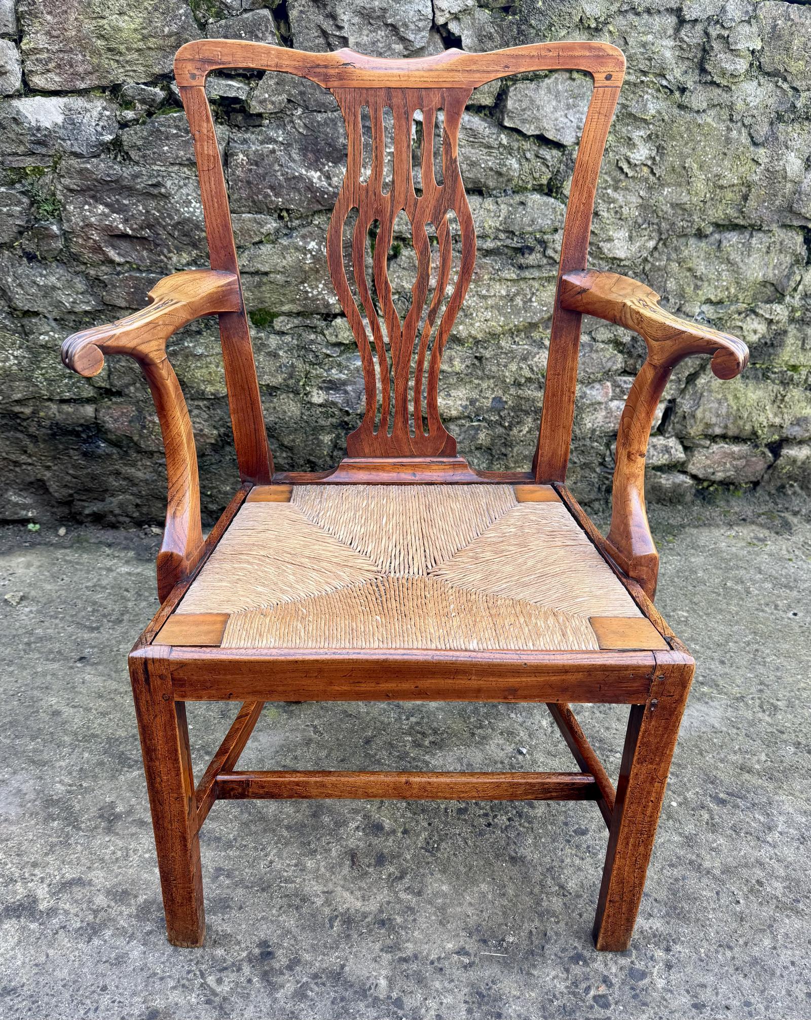 Georgian Elm Rush Seat Carver Chair