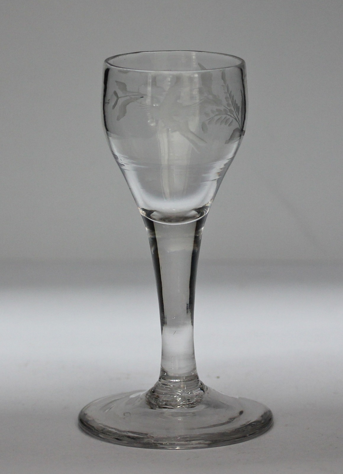 Georgian, English, Engraved Plain Stem Small Wine or Cordial Glass