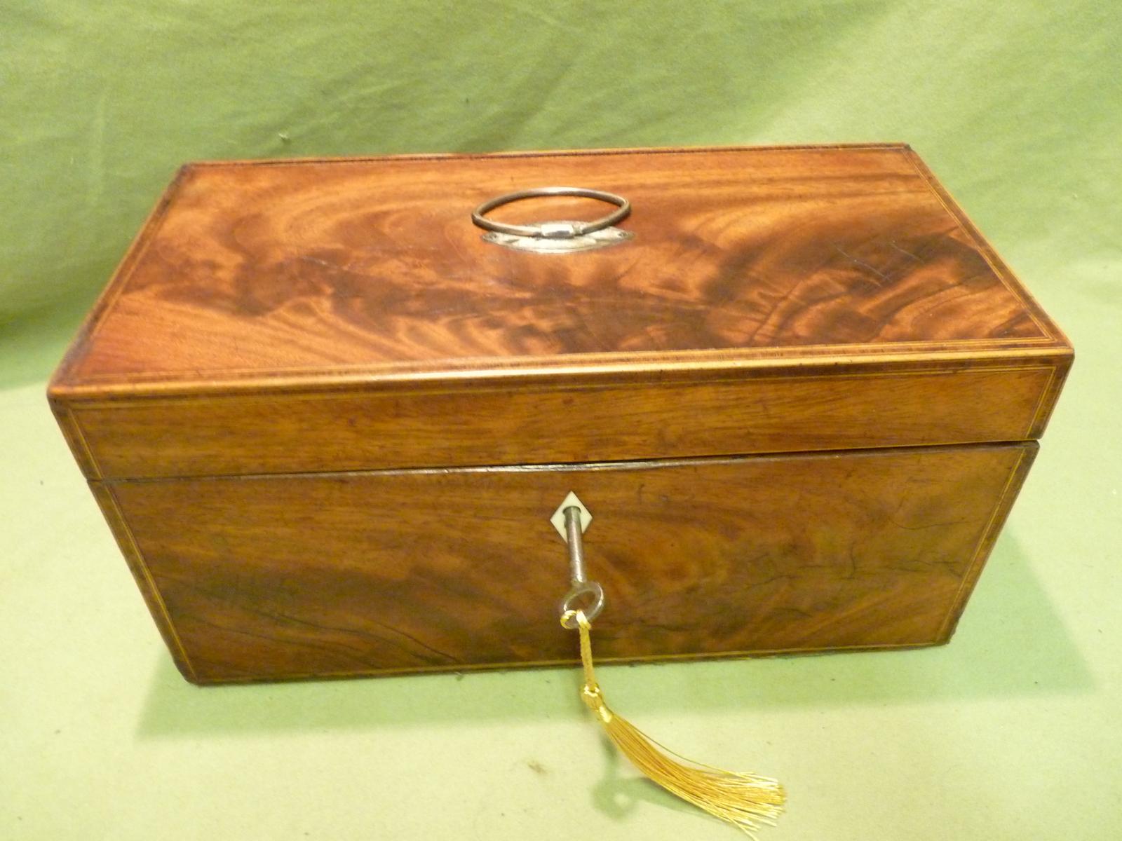 Georgian Flame Mahogany Twin Canister + Bowl Tea Caddy c.1830