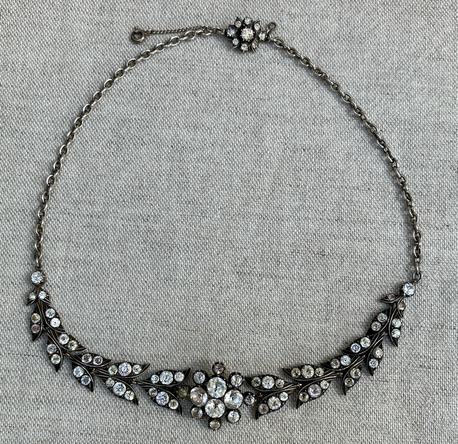 Georgian Foiled Black Dot Paste Silver Foliate Necklace