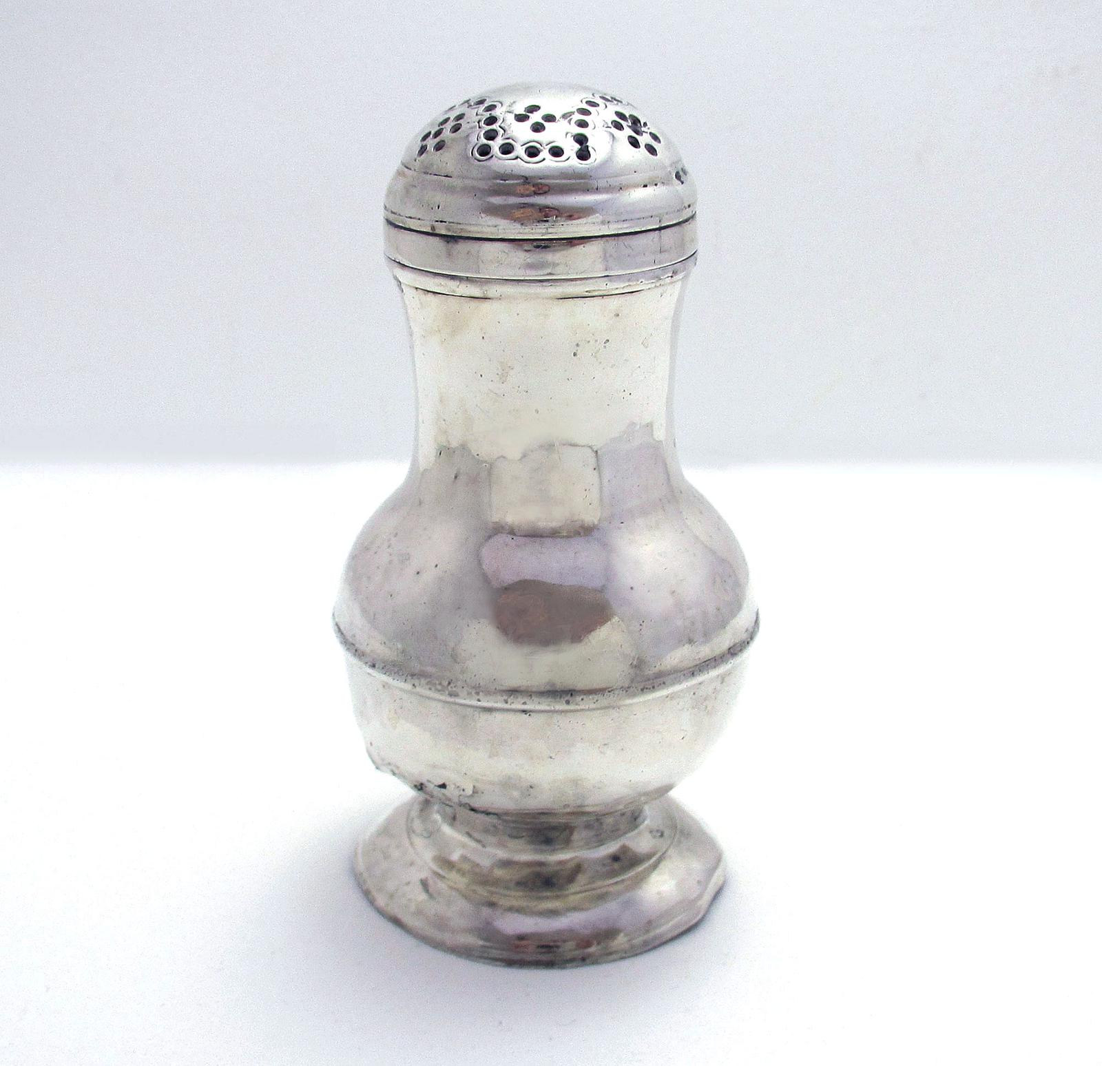 Georgian George II London 1748 Solid Sterling Silver Antique Bun-top Pepper Pot Shaker. English 18th Century