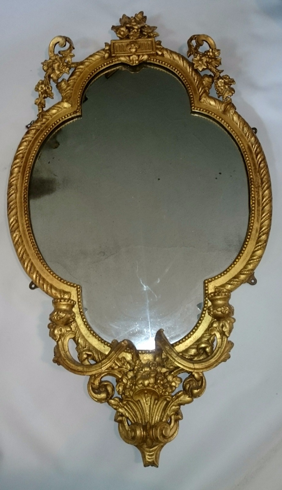 Georgian Gilt Wood Wall Mirror, Girandole, Pier Mirror Candle Sconce Original Mercury Plate C.1810