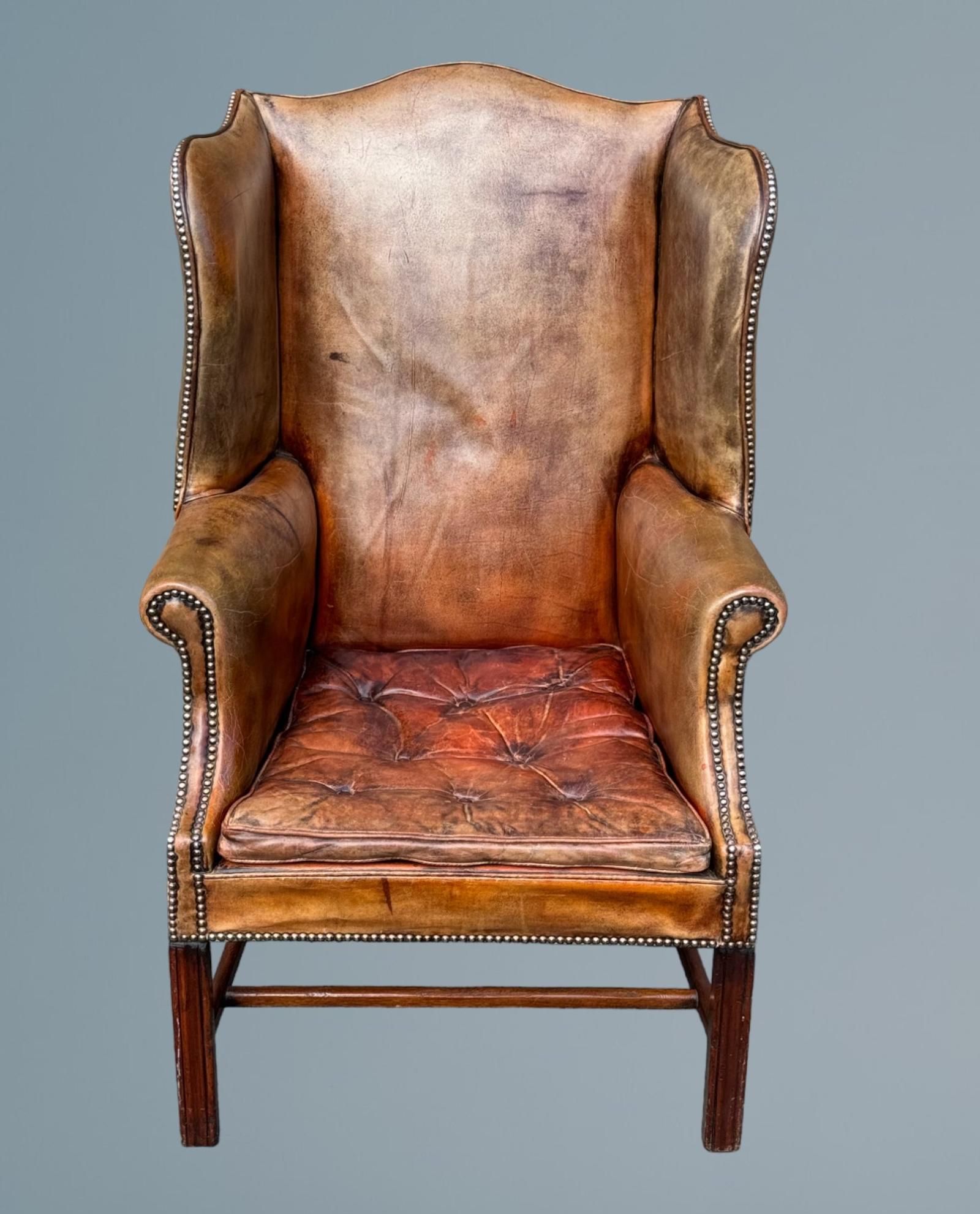 Georgian Inspired Mahogany & Leather Upholstered Wing Chair