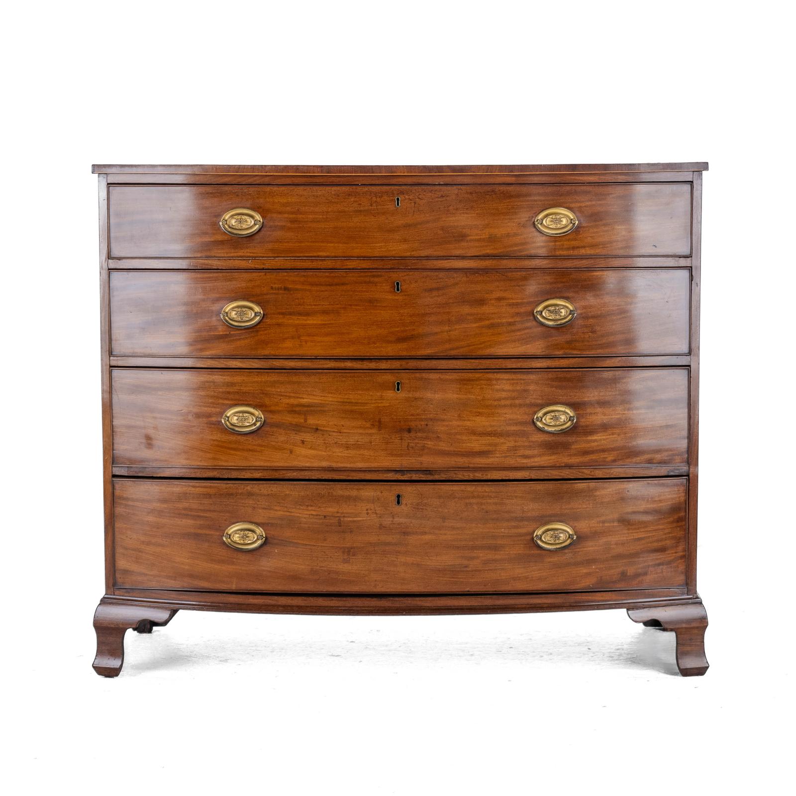 Georgian Late 18th Century Mahogany Inlaid Bow Front Chest of Drawers