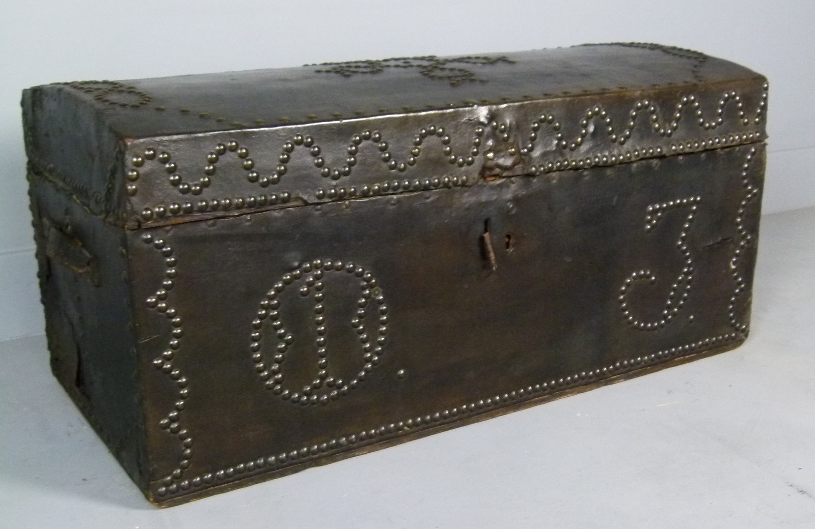 Georgian Leather & Brass Stud Carriage Travelling Trunk Chest