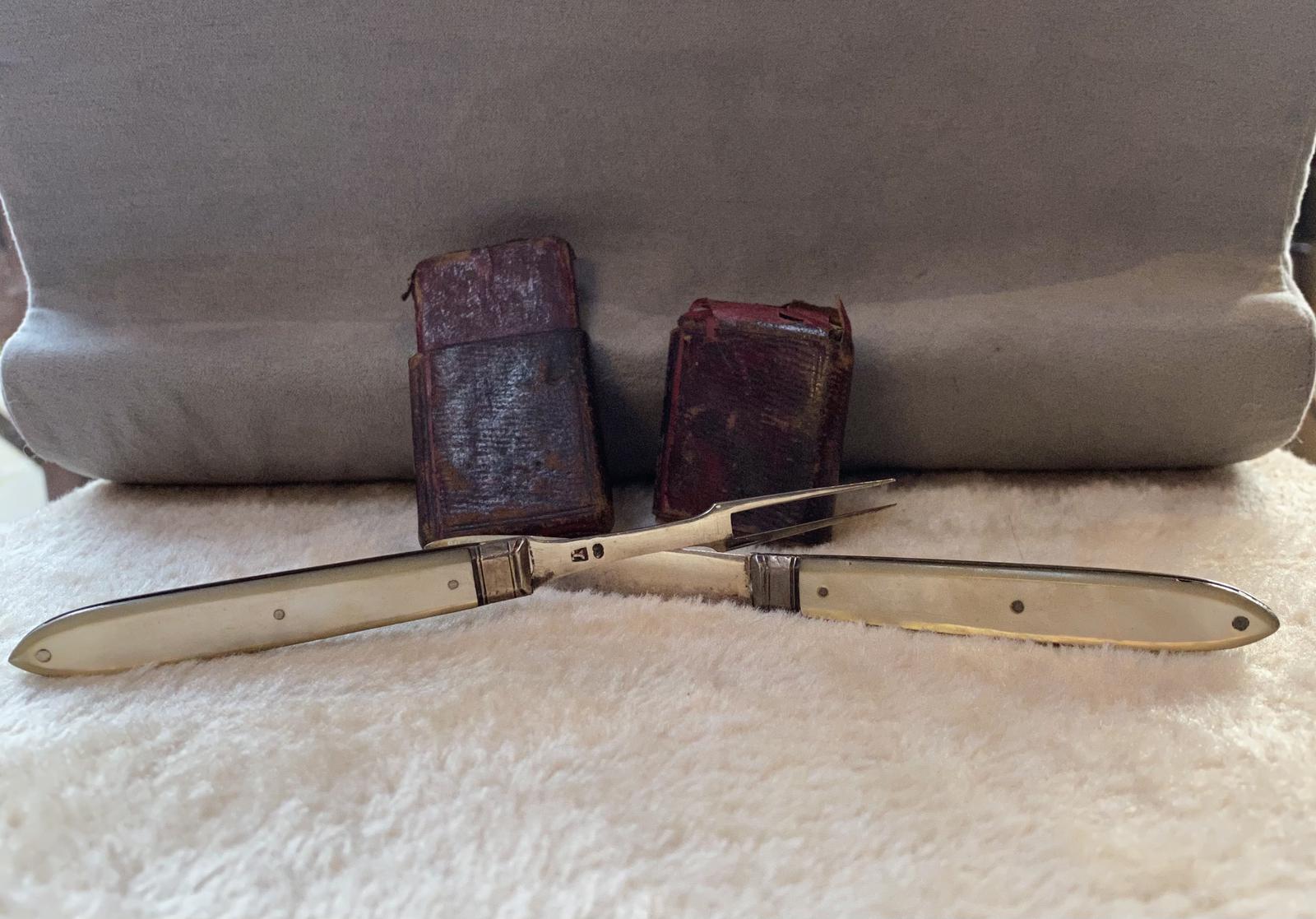Georgian Leather Cased Silver Campaign Folding Knife & Fork