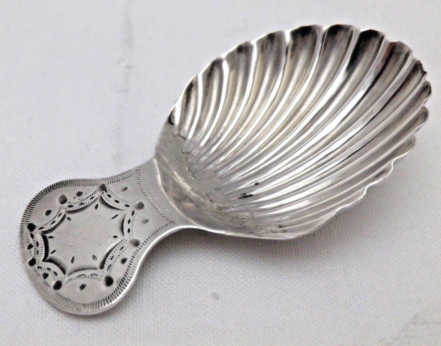 Georgian London 1799 Antique Solid Silver Shell Bowl Tea Caddy Spoon