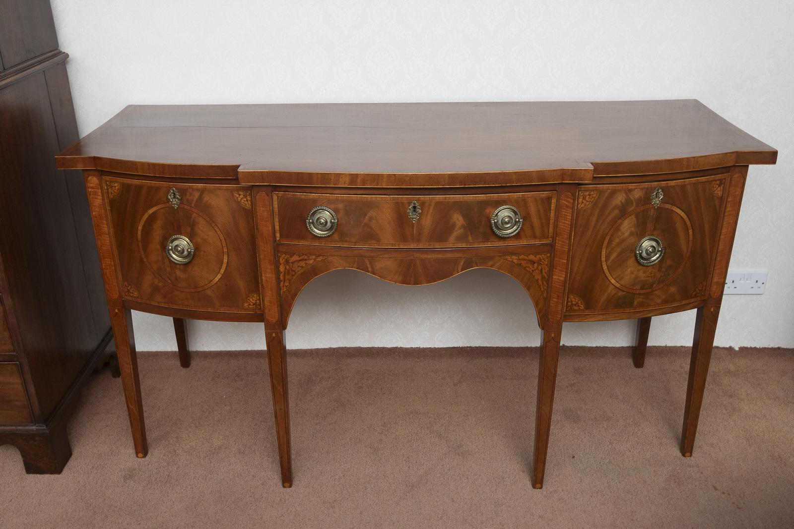 Georgian Mahogany Bow Front Sideboard with Wonderful Inlay