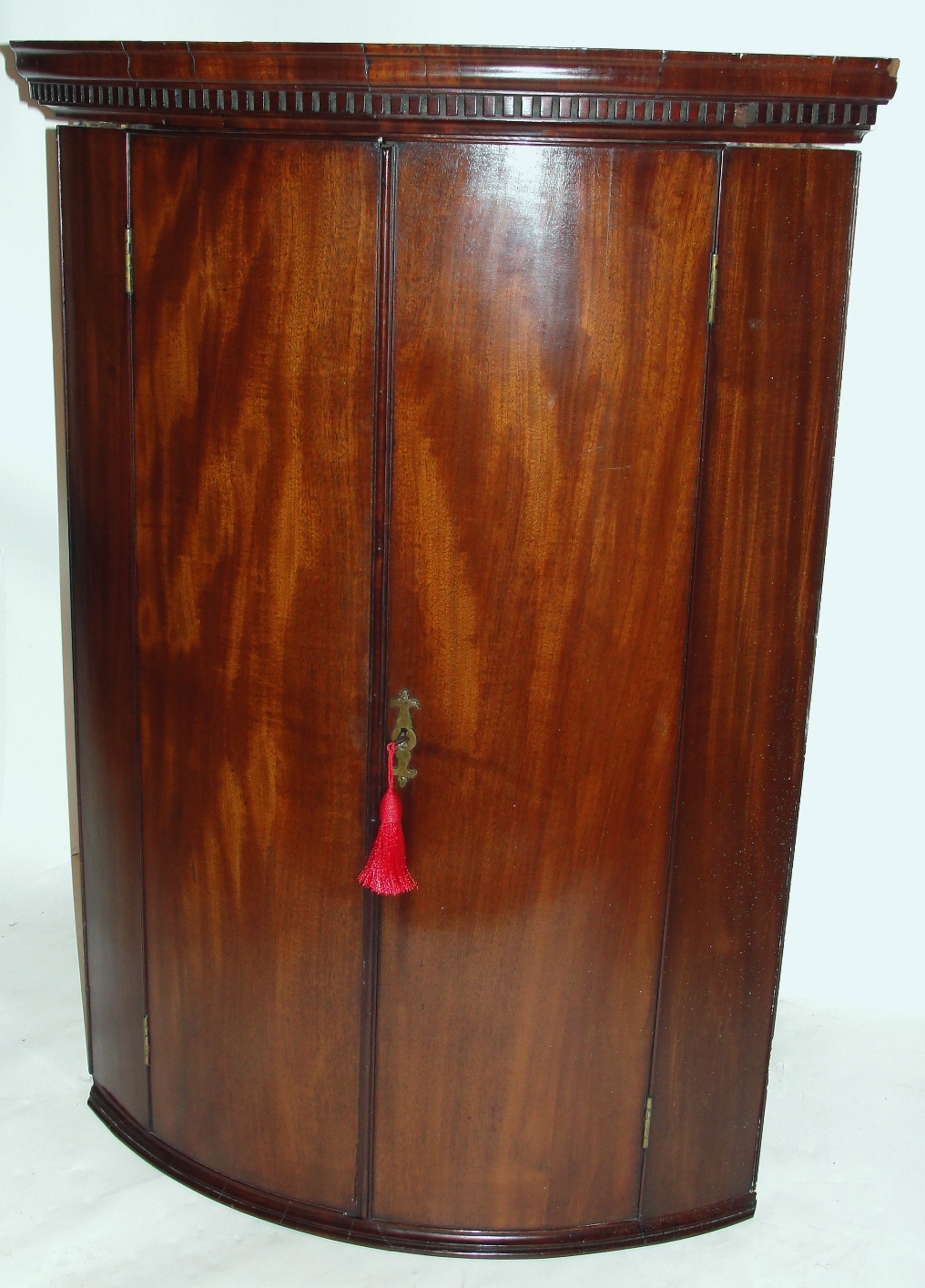 Georgian Mahogany Bow Fronted Hanging Corner Cabinet / Cupboard c.1770