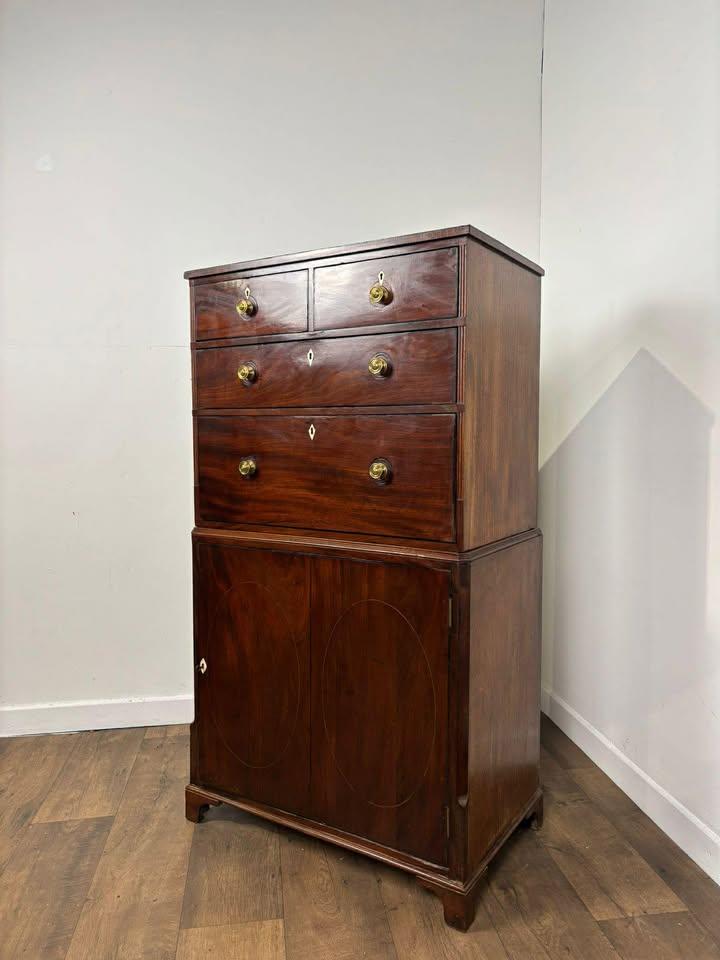 Georgian Mahogany Cabinet – Chest Over Cupboard (Two-Part Construction)