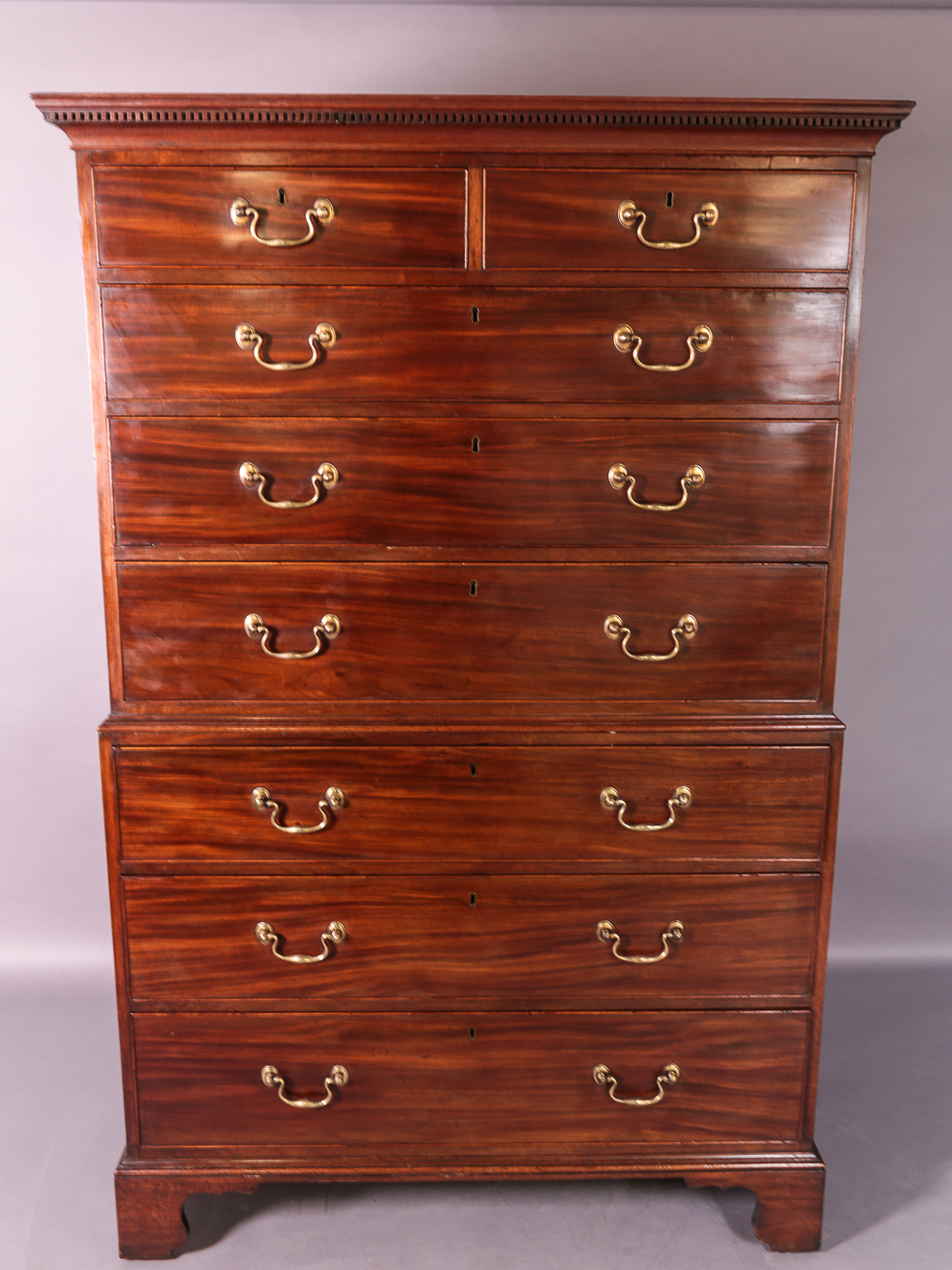 Georgian Mahogany Chest on Chest Original Brass