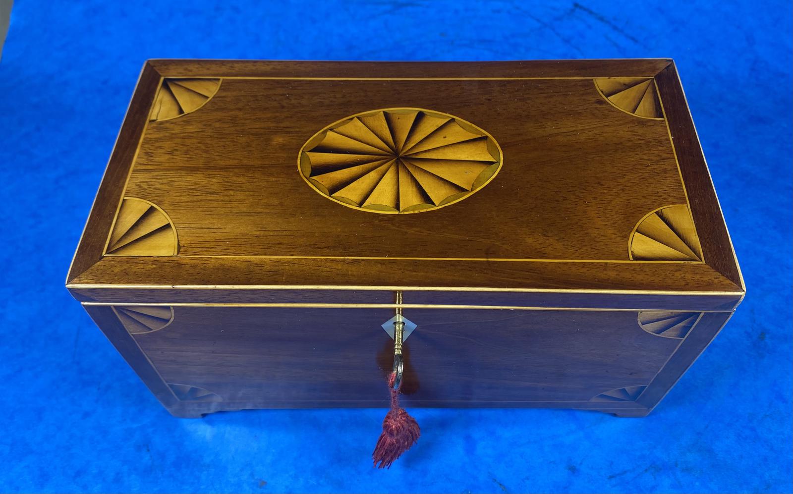 Georgian Mahogany Fan Inlaid Tea Caddy