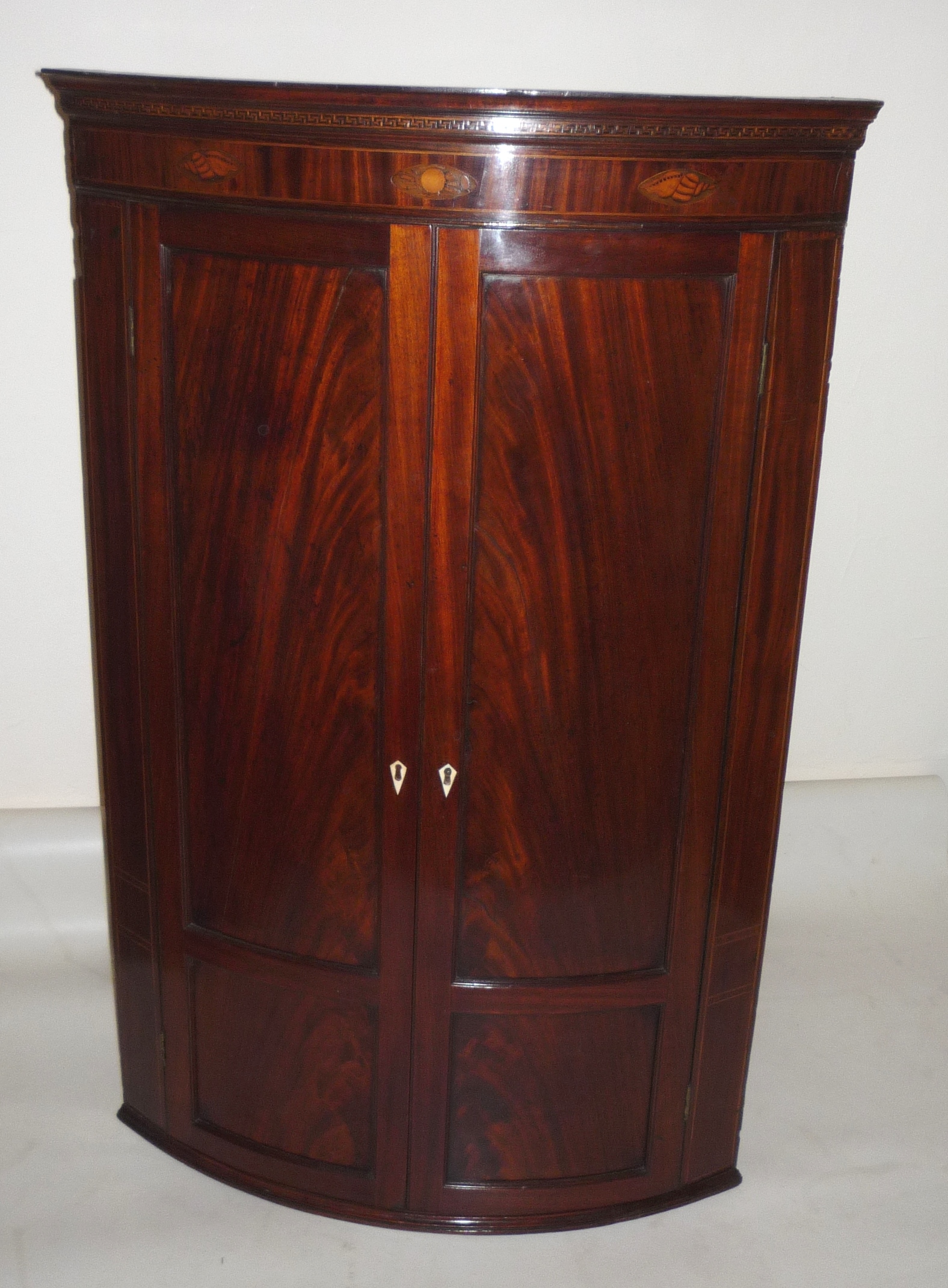 Georgian mahogany inlaid corner cupboard
