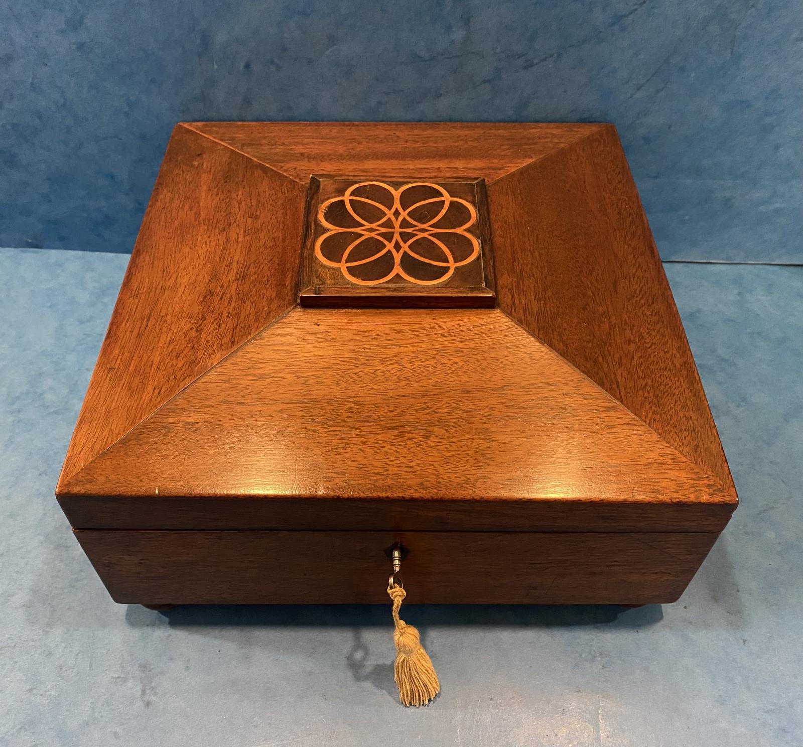 Georgian Mahogany Sarcophagus Jewellery Box with Boxwood Inlay