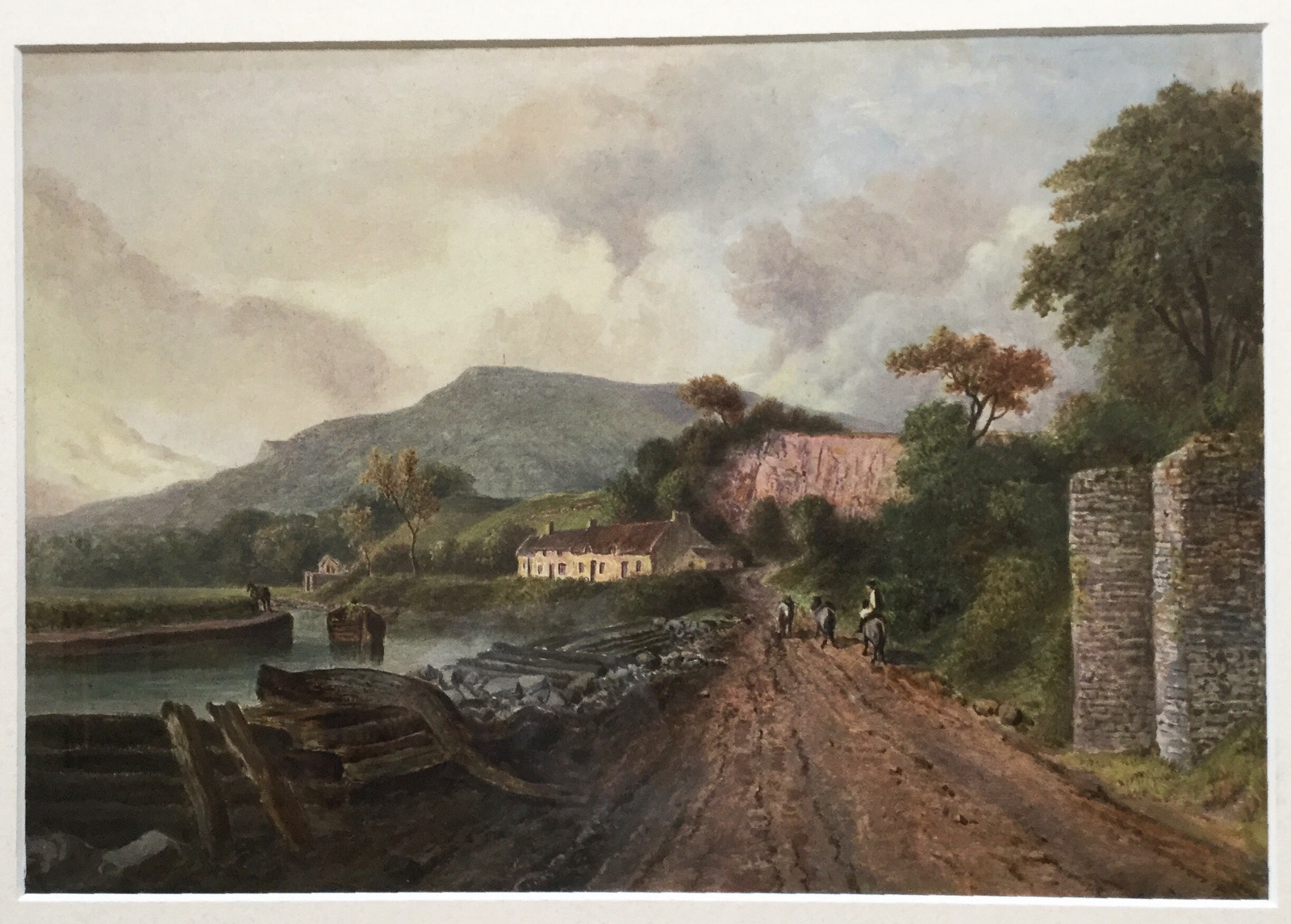 Georgian Miniature Landscape Oil Painting of Canal & Barge