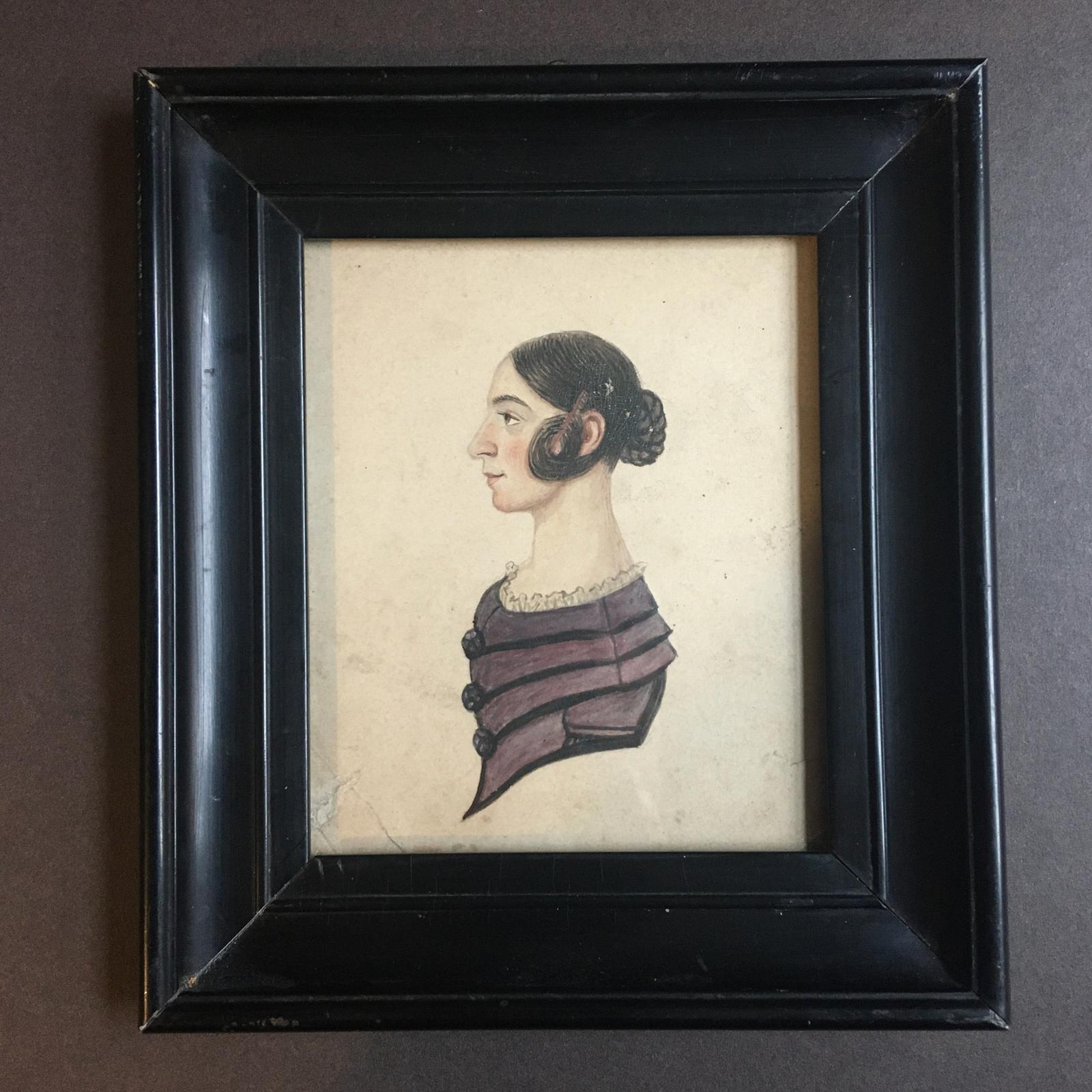 Georgian Miniature Portrait of a Young Woman in Profile with the Most Impressive Curl