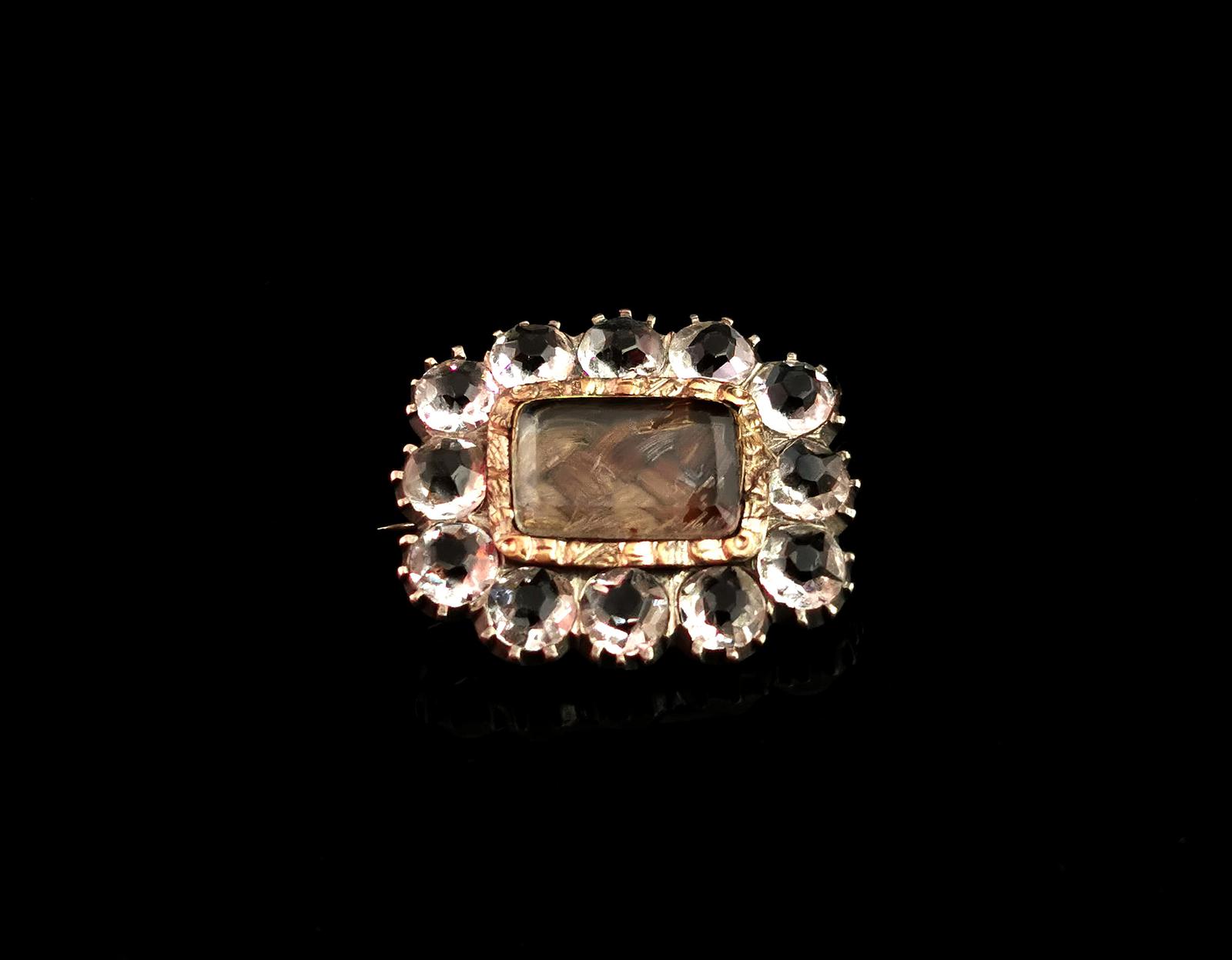 Georgian Mourning Brooch, 9ct Gold, Hairwork and Paste