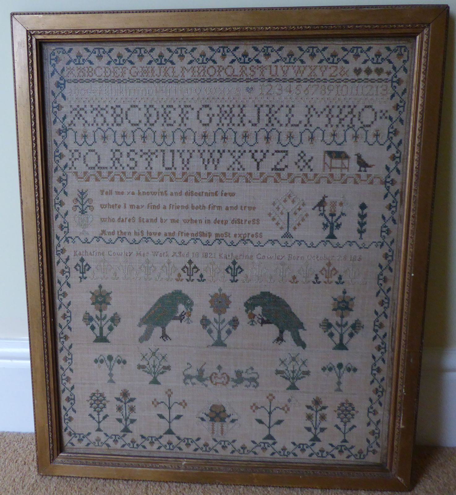 Georgian Needlework Sampler Katherine Cowley Aged 18 1821 with Parrots