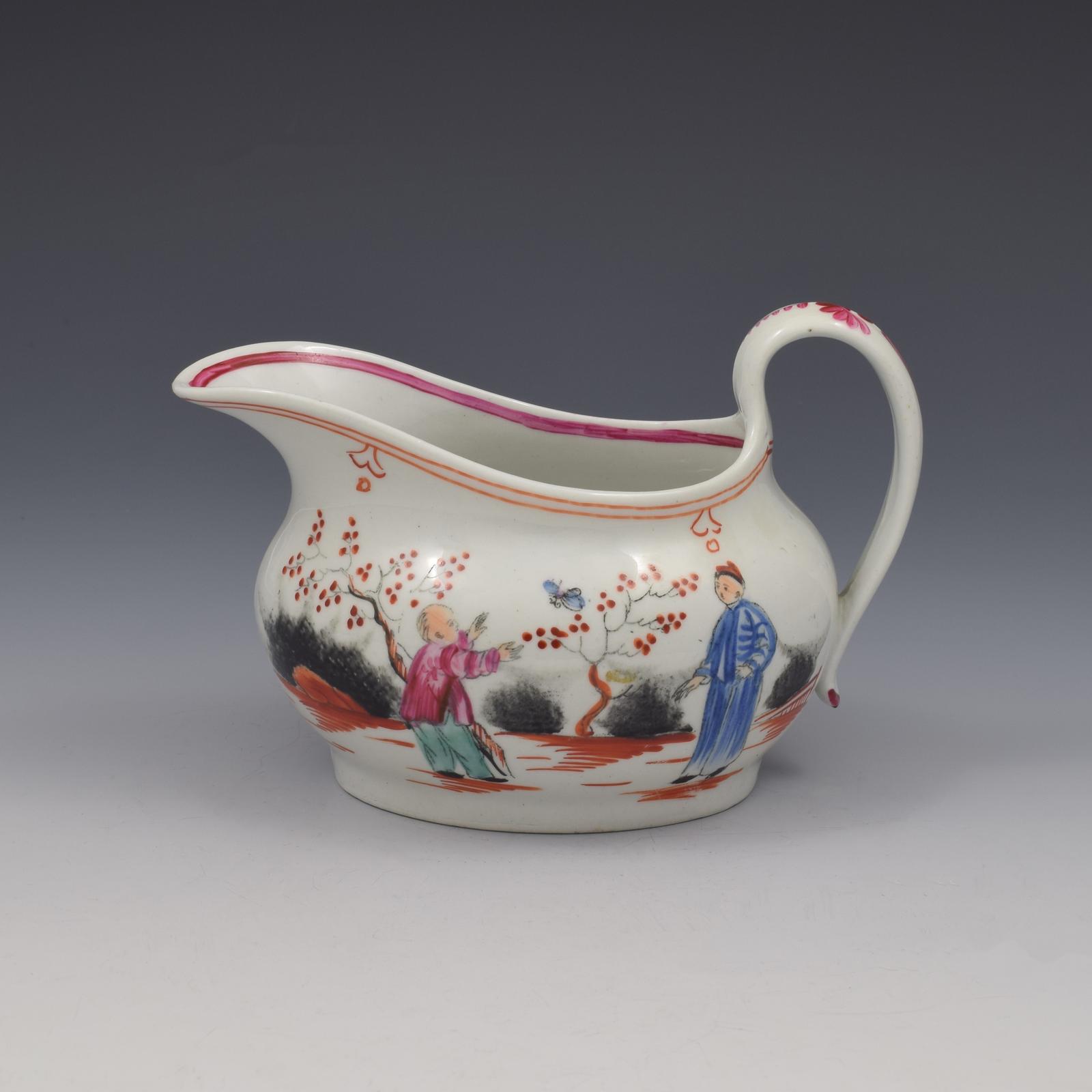 Georgian New Hall Porcelain Cream / Milk Jug Boy & Butterfly Pattern 421
