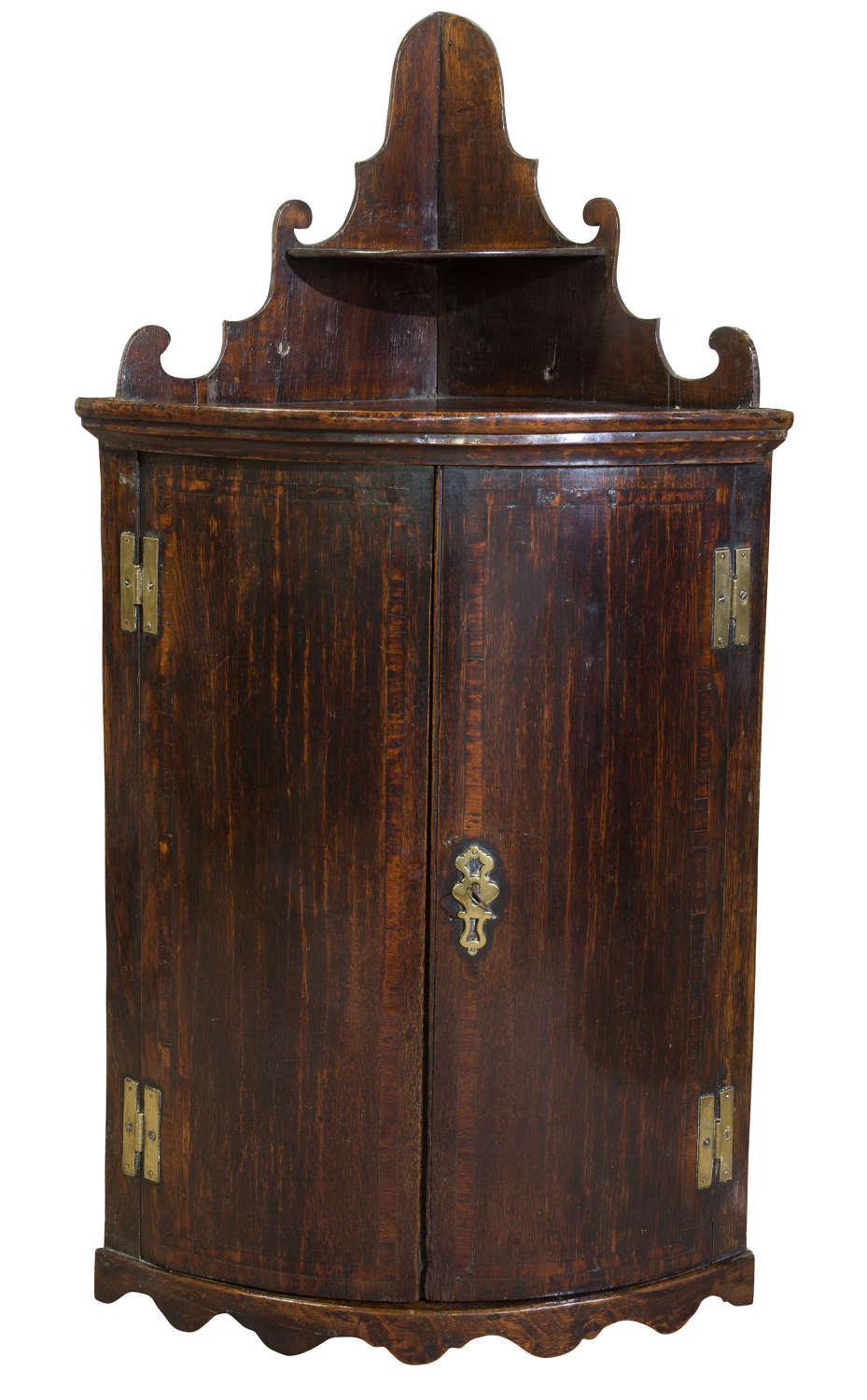 Georgian Oak and Mahogany Banded Bow-front Corner Cupboard