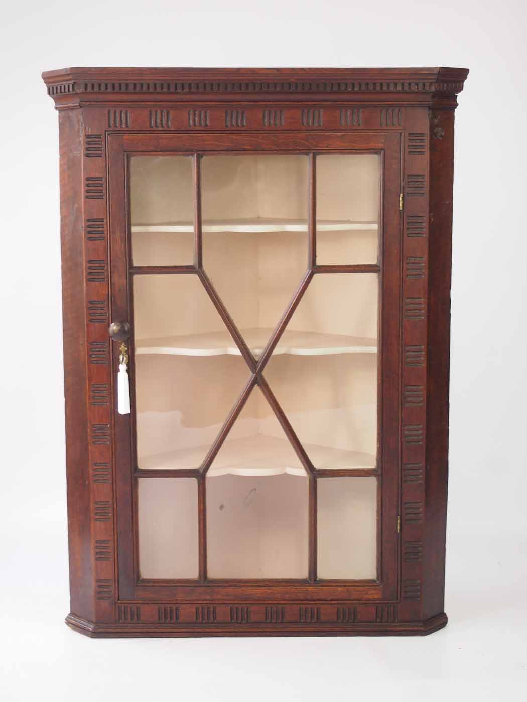 Georgian Oak Corner Cupboard with Astragal Glazed Door