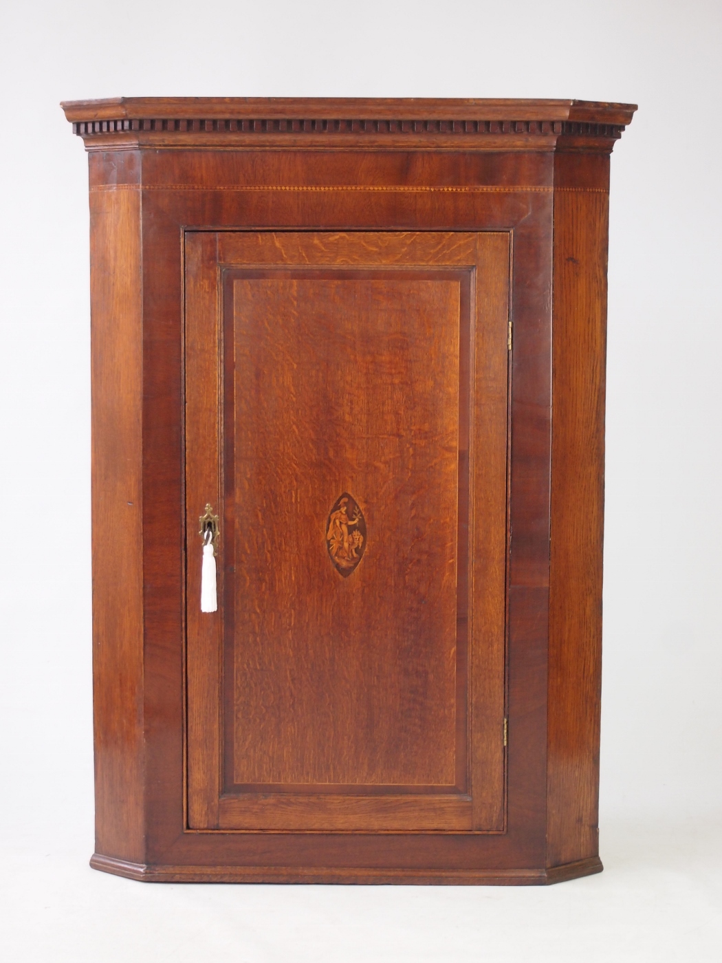 Georgian Oak Corner Cupboard with Britannia Inlay