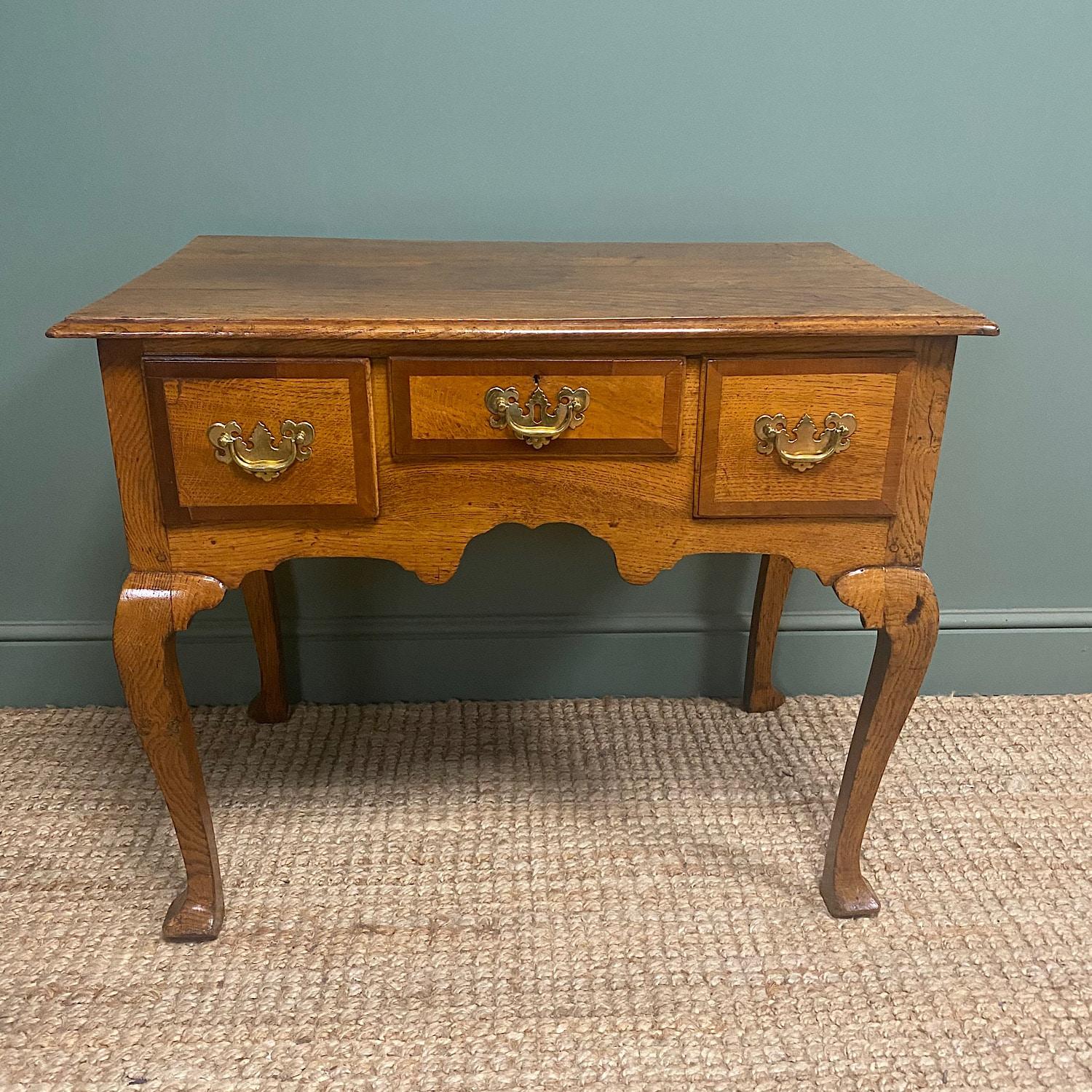 Georgian Oak Cross Banded Antique Lowboy / Side Table