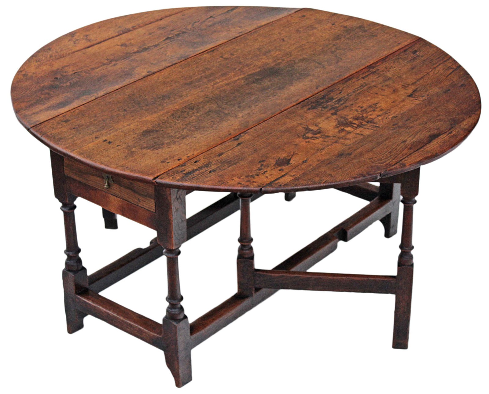 Georgian Oak & Elm Gateleg Drop Leaf Dining Table (4'10 x 4'6)