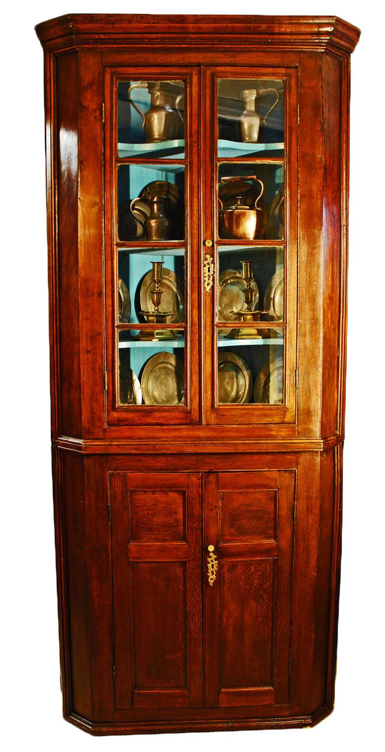 Georgian Oak Floor Standing Corner Cupboard. Glazed Display Cabinet (1 of 11)