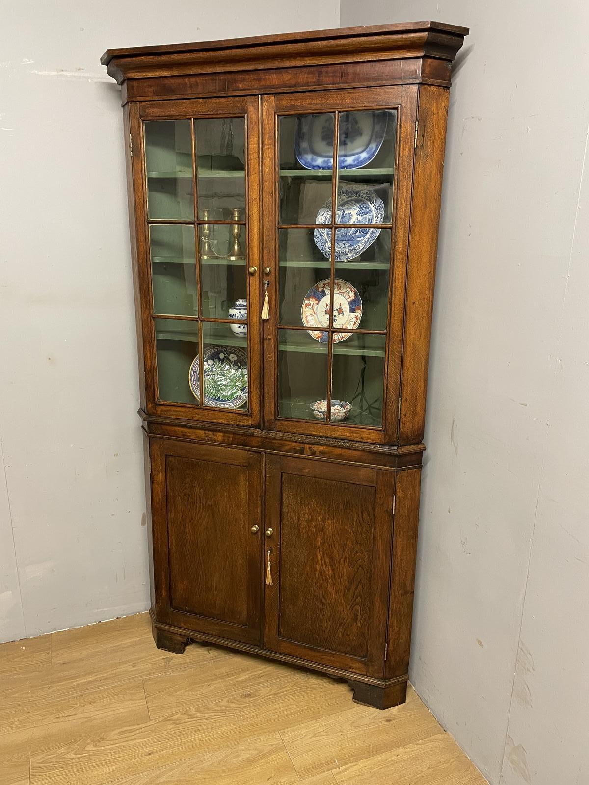 Georgian Oak Freestanding Glazed Corner Cabinet Cupboard c.1790
