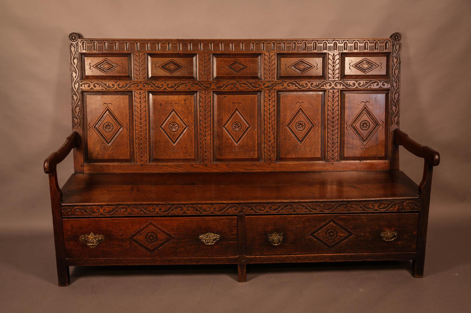 Georgian Oak Settle with Storage Drawers (1 of 10)