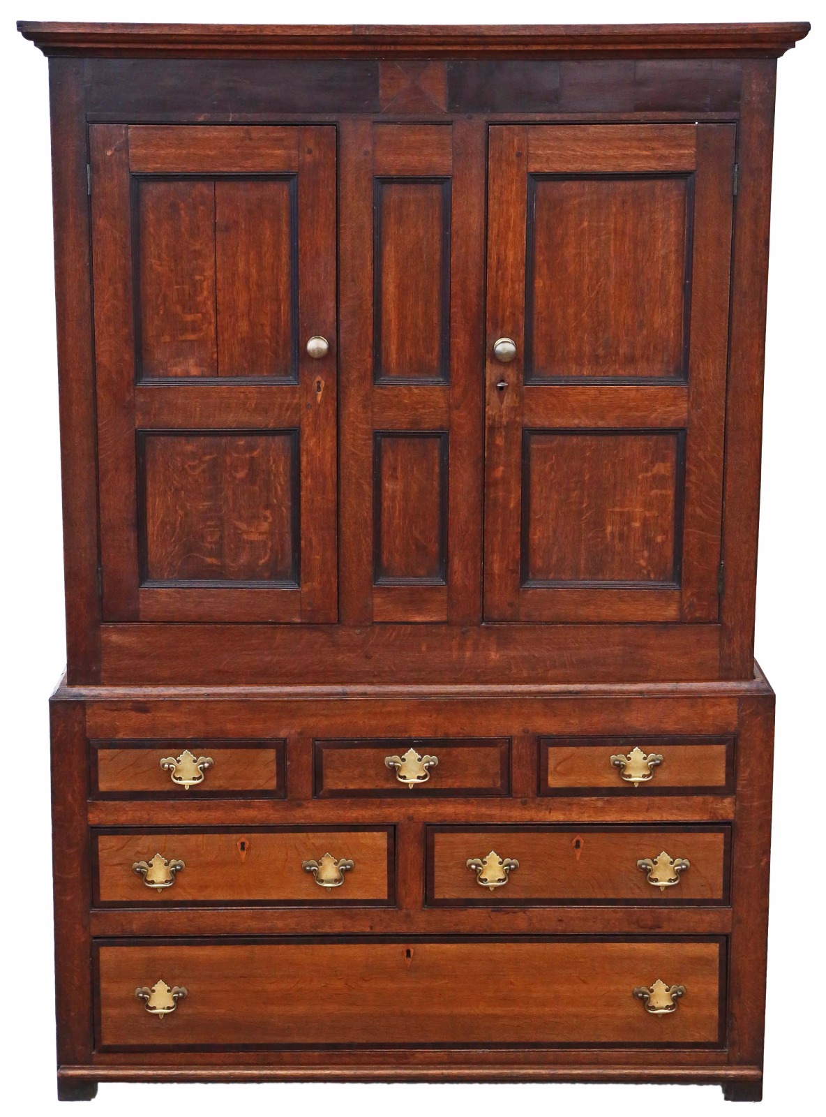 Georgian Oak Wardrobe Hall Coat Cupboard On Chest C.1800