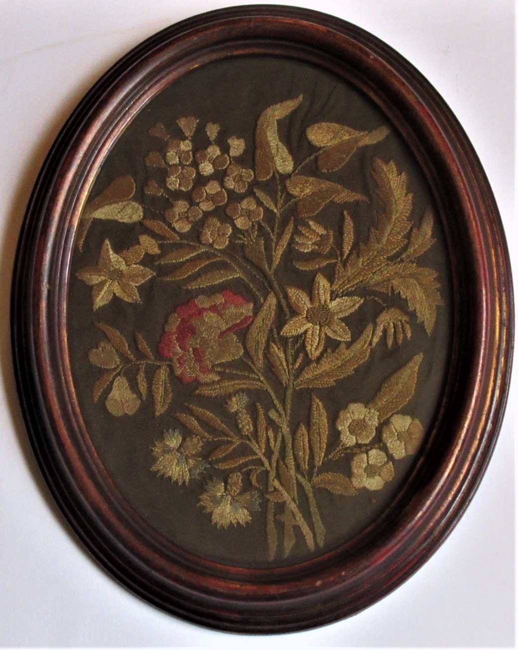 Georgian or Regency Silkwork Floral Picture in Oval Frame c.1820