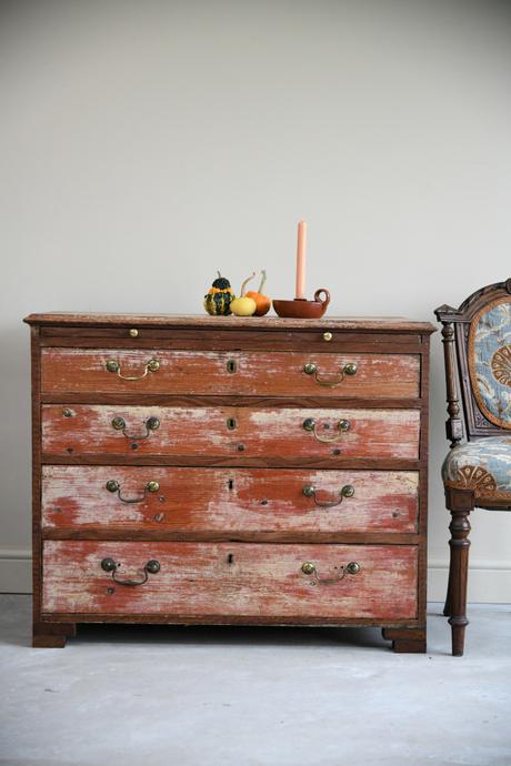 Georgian Painted Pine Wooden Chest of Drawers