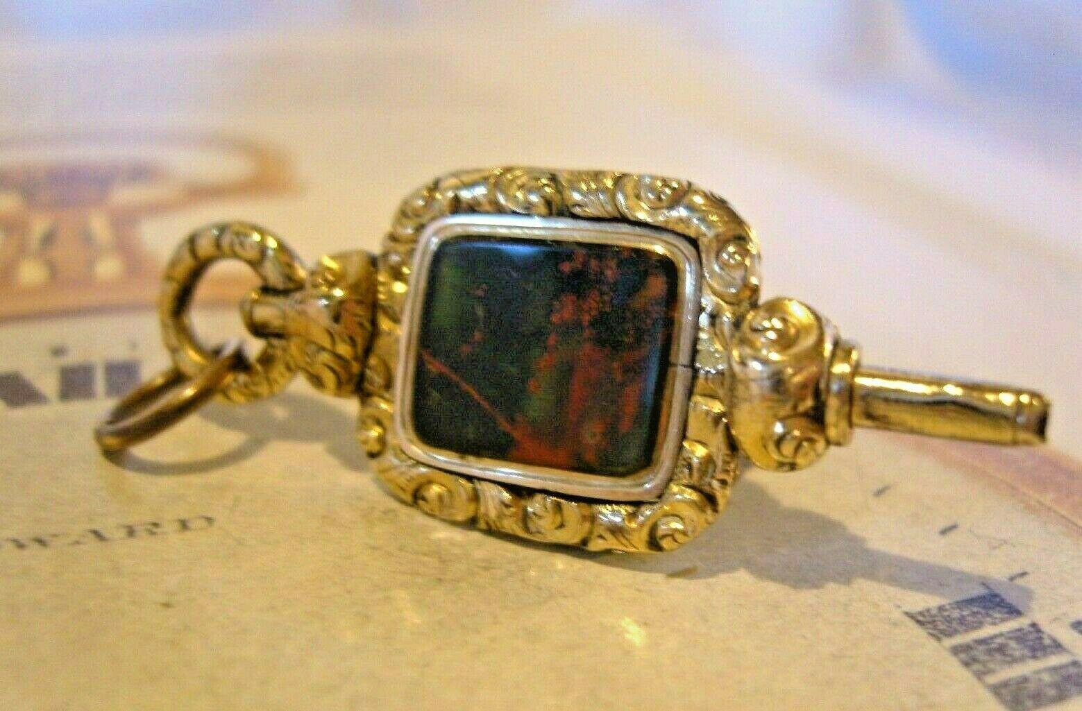 Georgian Pocket Watch Chain Fob Key 1830s Large Gilt & Jasper Stone Fob