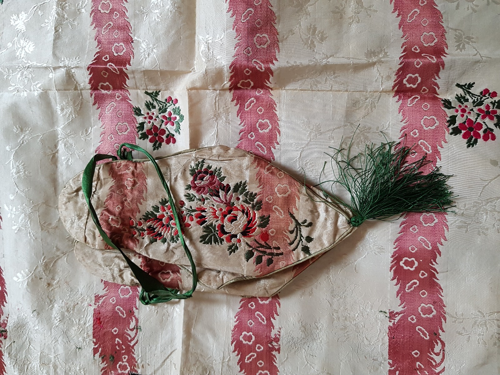 Georgian Reticule or Purse & Matching Fragment of Silk Brocade Cloth