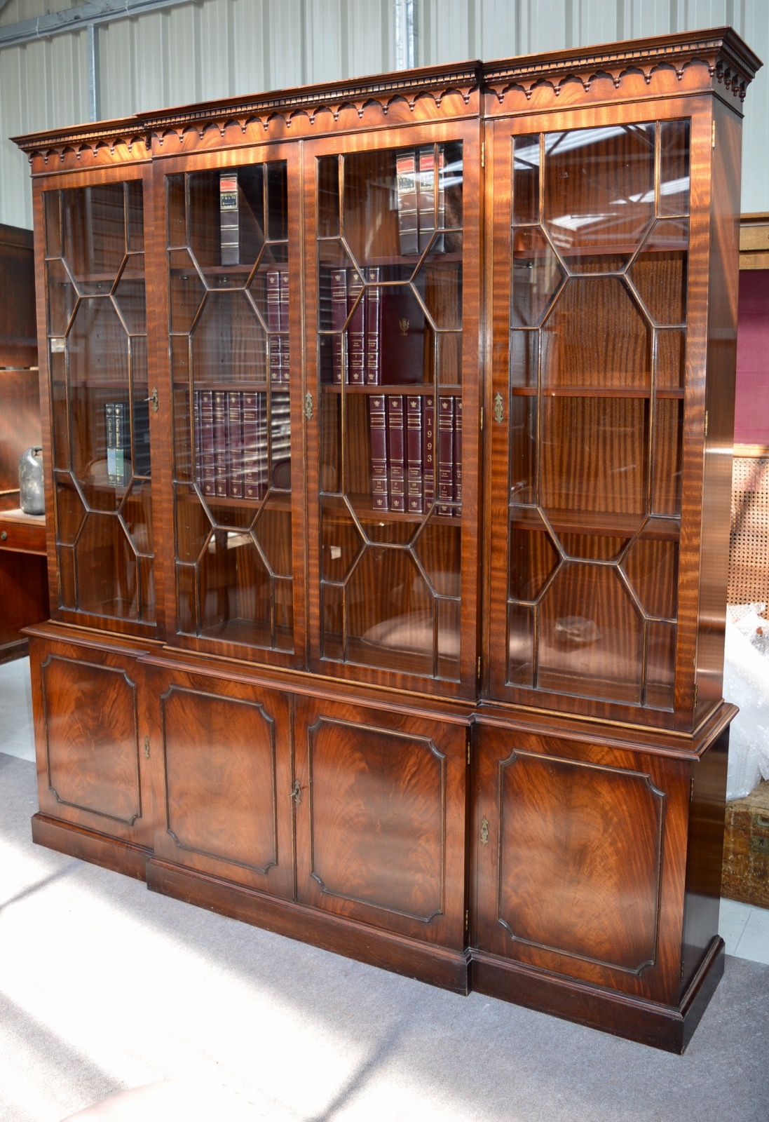 Georgian Revival Mahogany Breakfront Bookcase Library Bookcase (1 of 1)