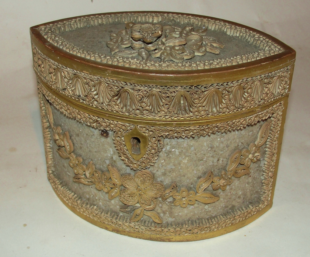 Georgian Scroll Paper and Mother of Pearl Mica Caddy c.1780