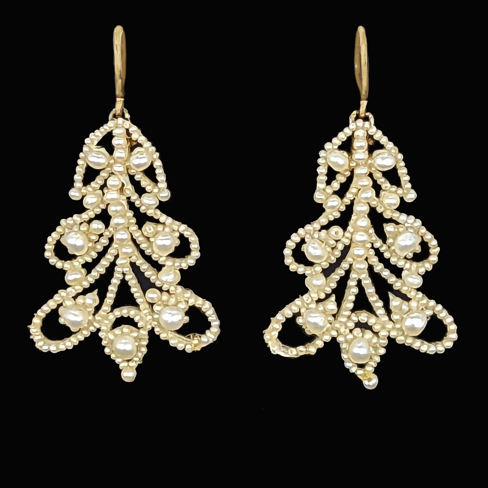 Georgian Seed Pearl Drop Earrings Christmas Tree Antique Dangle Earrings c.1800