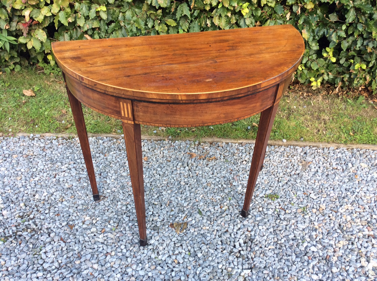 Georgian Sheraton Style Inlaid Mahogany Demi Lune Fold Over Card Table