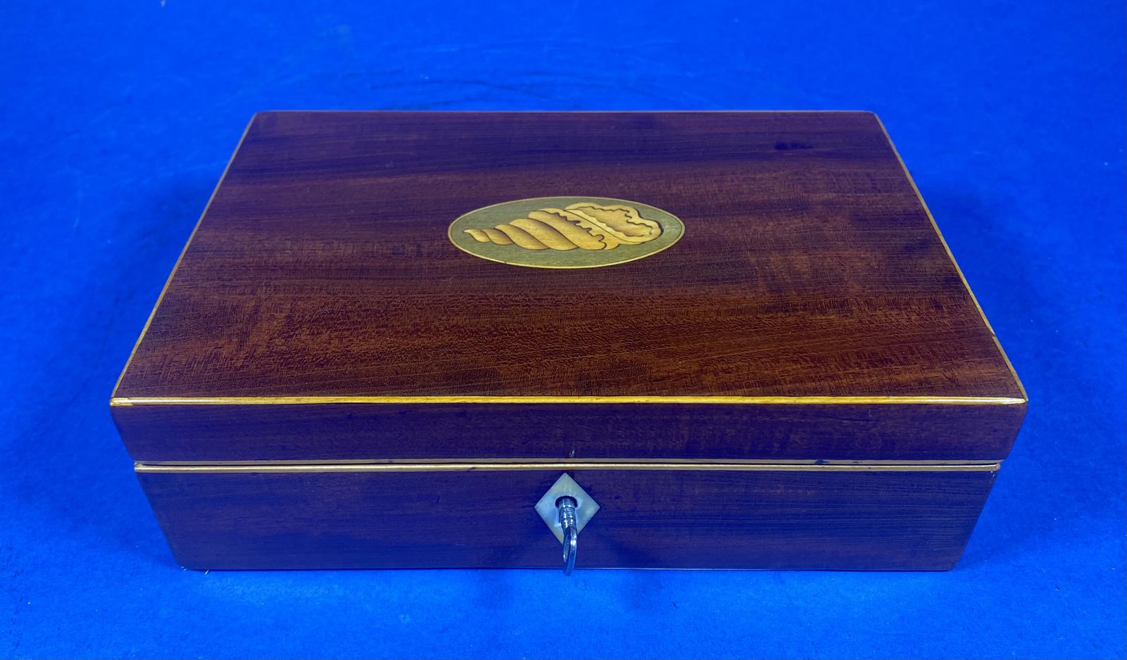 Georgian Sheraton Table Box In Mahogany With Inlay.