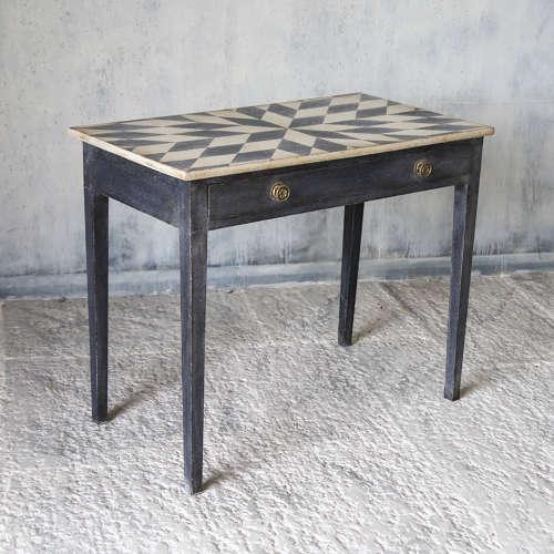 Georgian Side Table with Single Drawer Later Painted Geometric Pattern