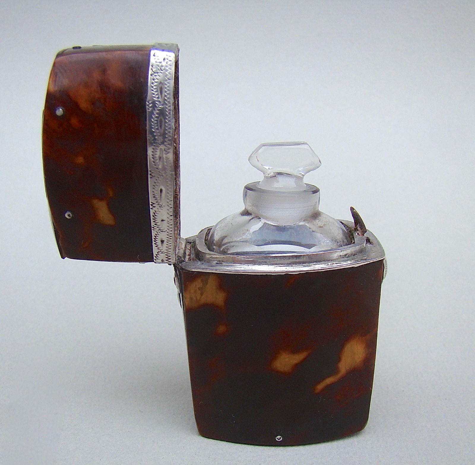Georgian Silver Mounted Tortoiseshell Scent Bottle Etui, circa 1780