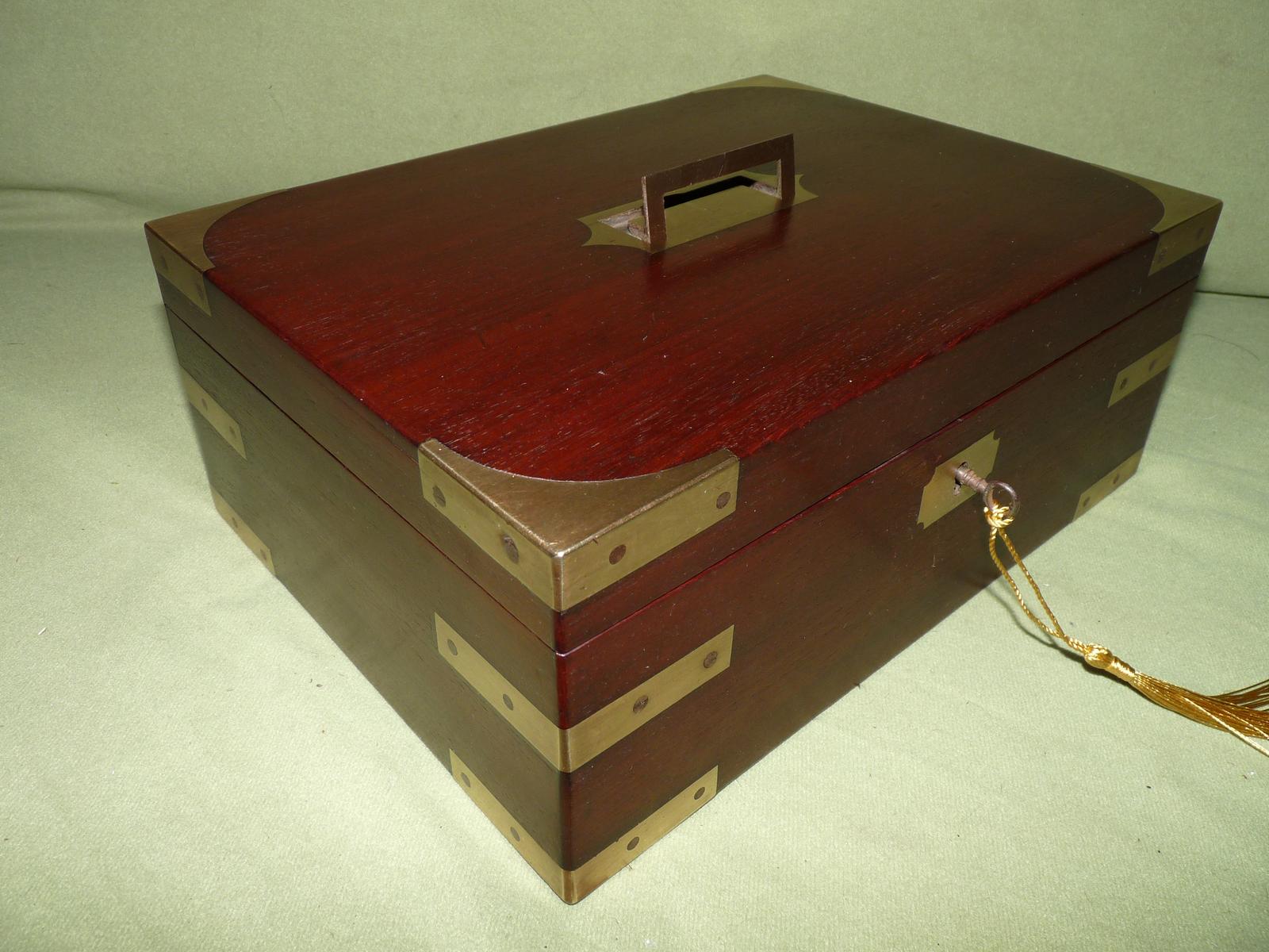Georgian Solid Mahogany Brass Bound Jewellery Box + Tray.c1825