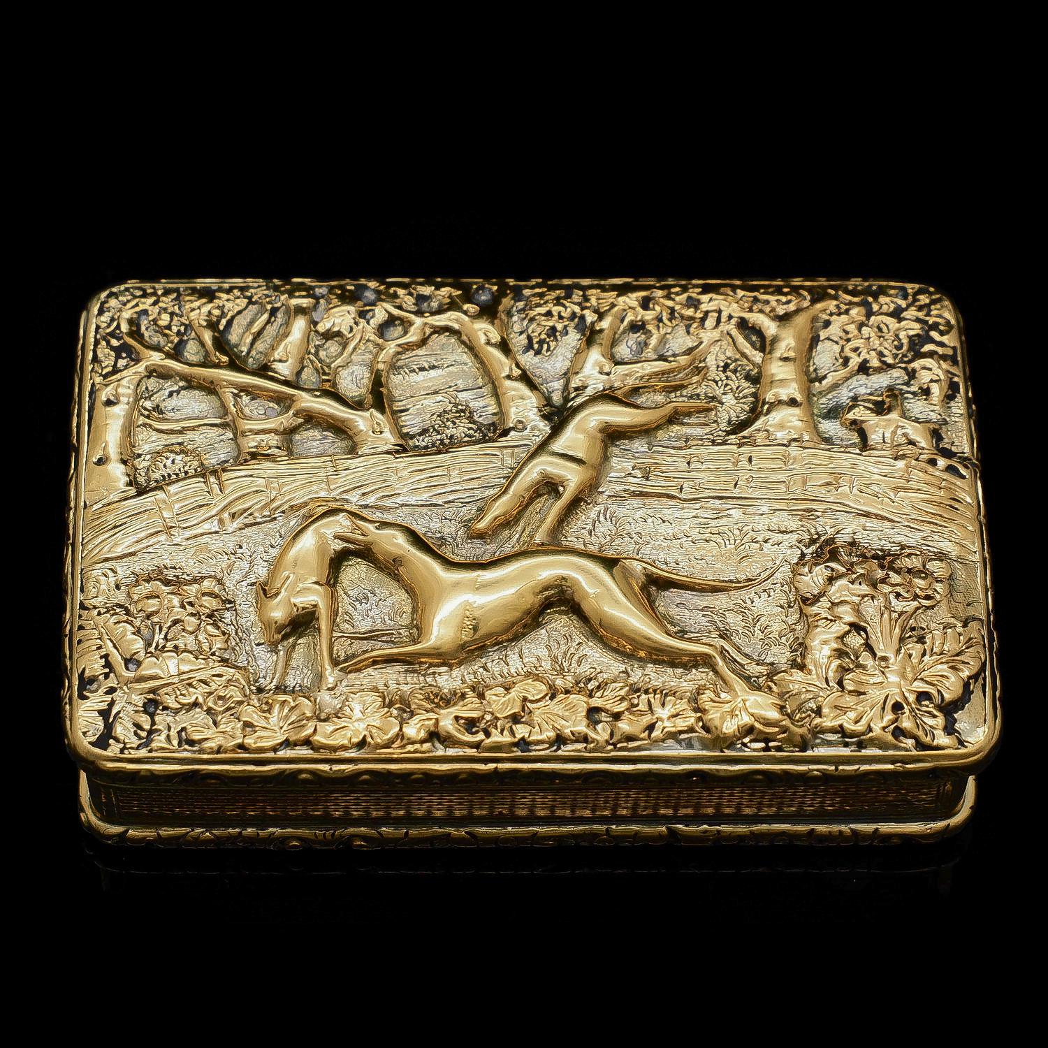 Georgian Solid Silver Gilt Snuff Box With Spectacular Fox Hunting Scene - Edward Smith 1832