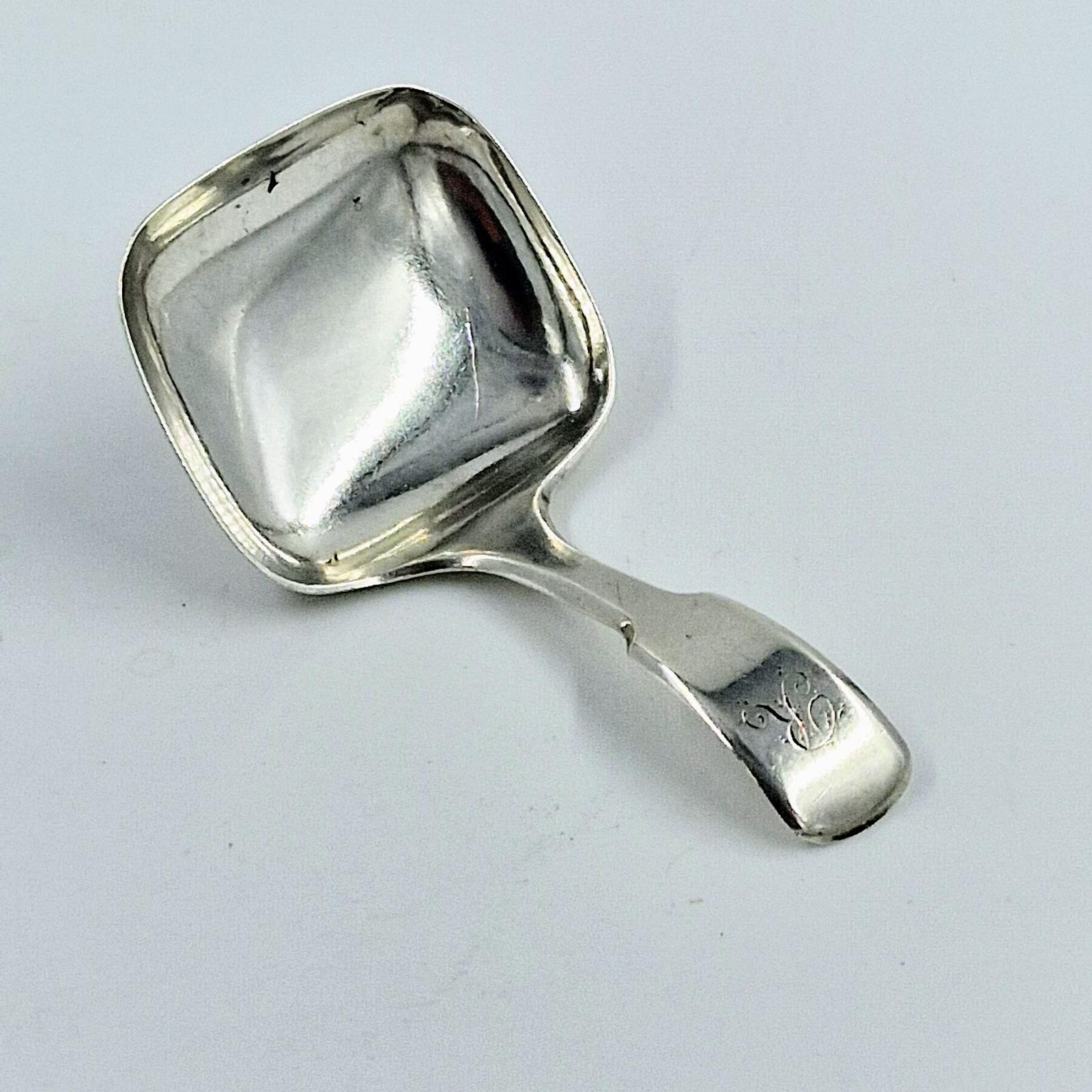 Georgian Solid Silver Square Bowl Caddy Spoon William Pugh