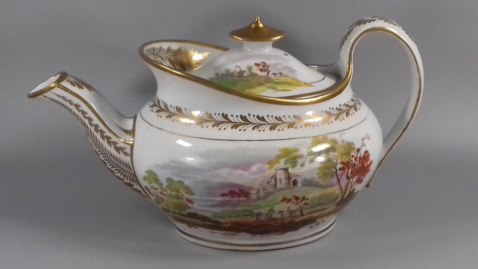 Georgian Spode patt 984 castle landscape large porcelain teapot